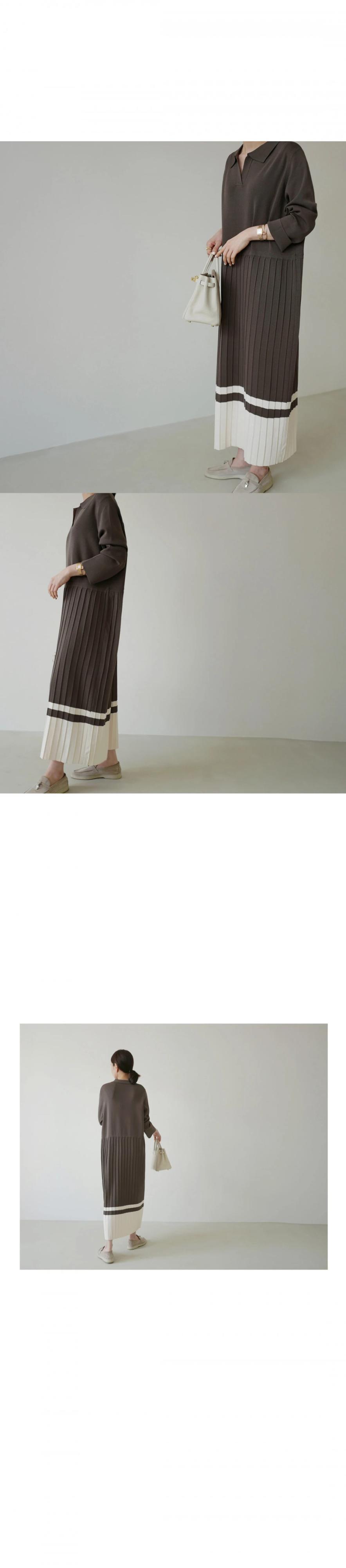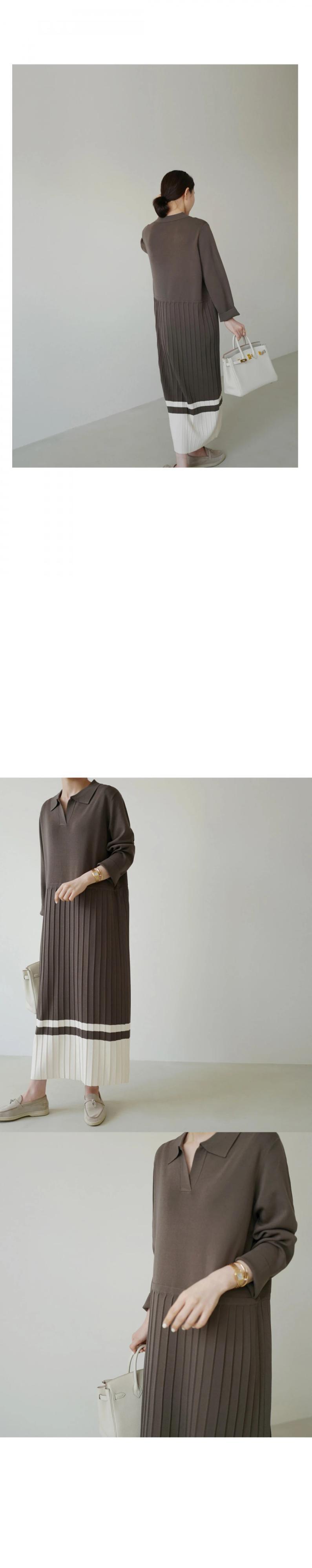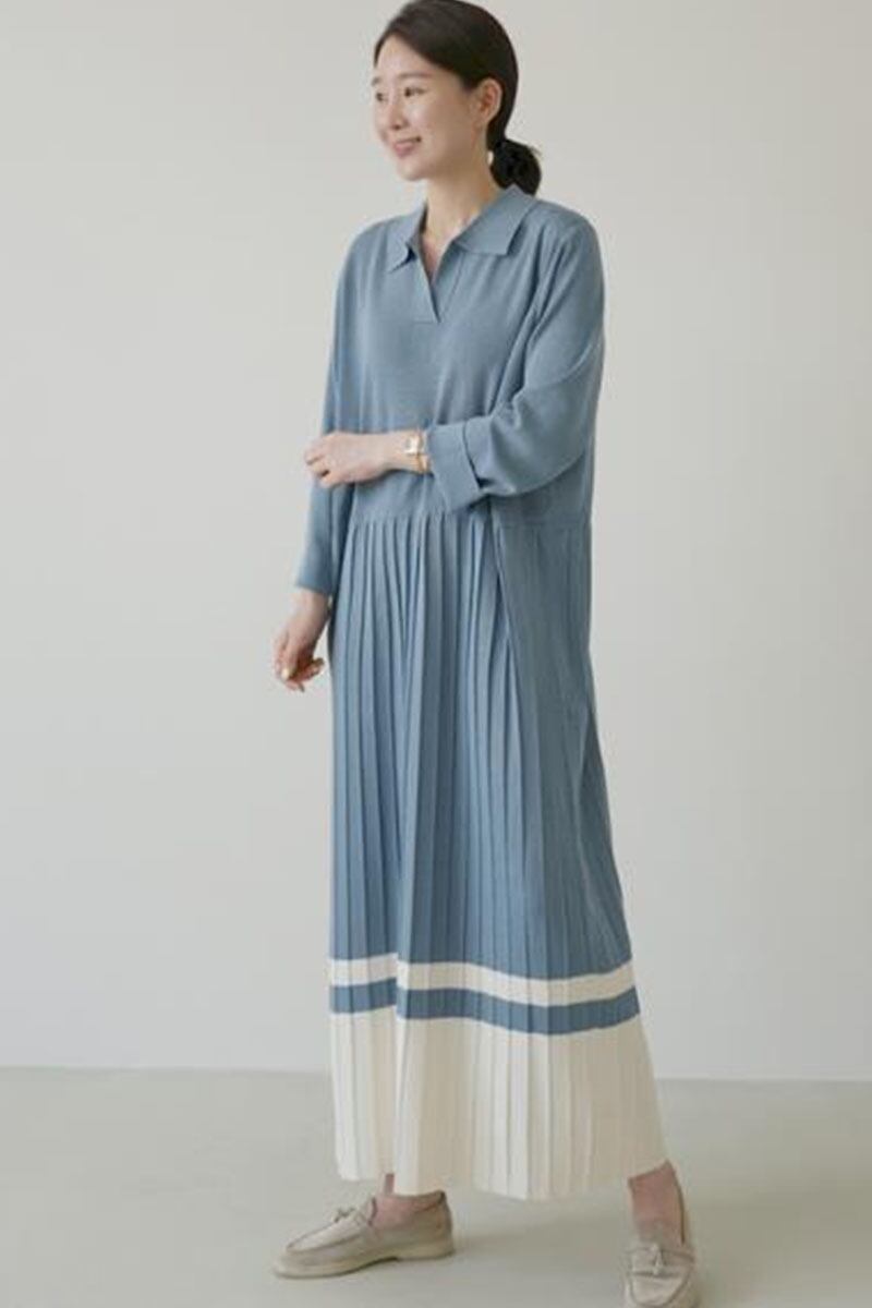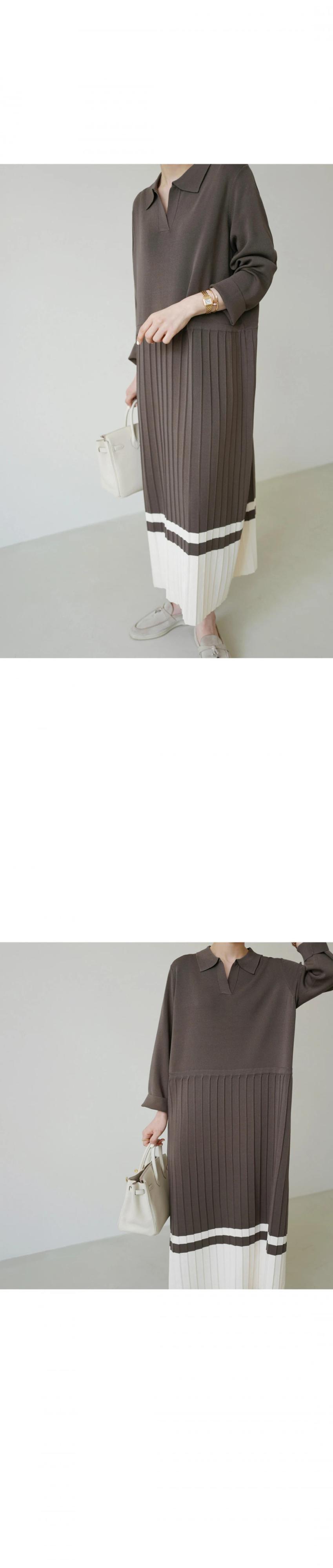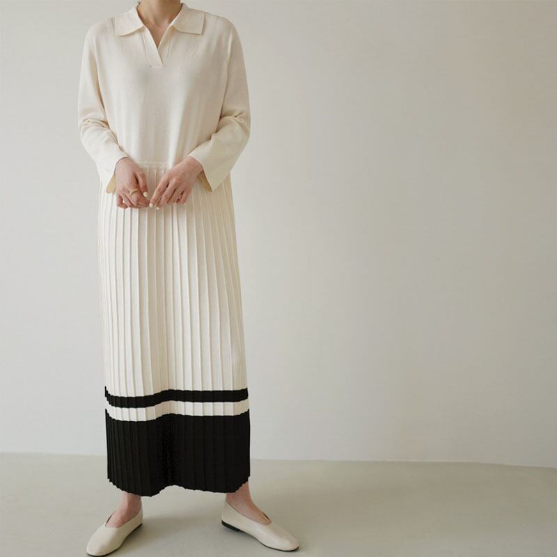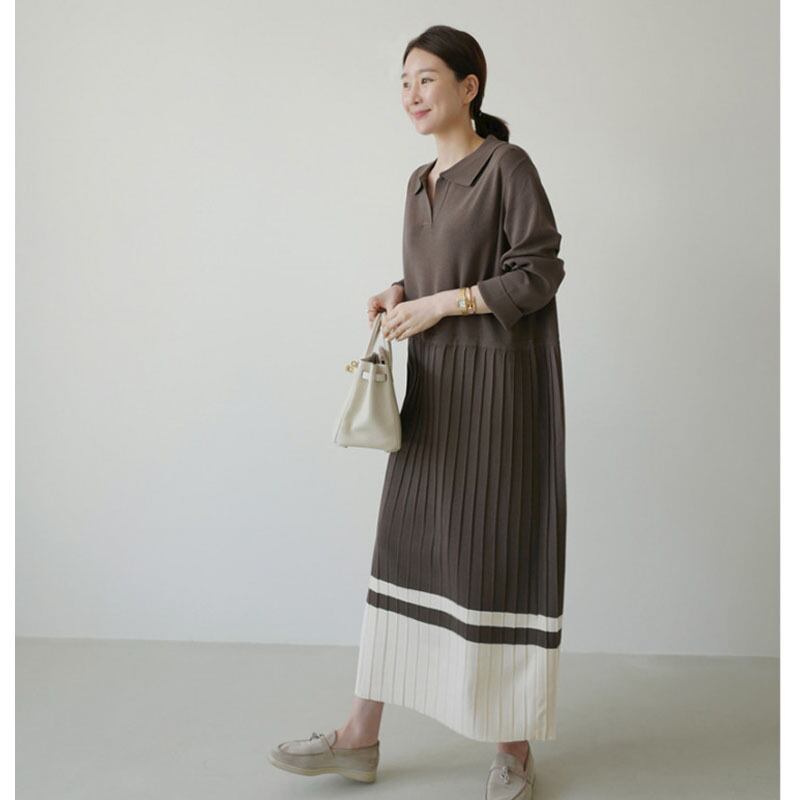 スタイルプリーツスプライシングデザインロングルーズニット長袖ドレス女性の秋と冬の新しいカラーマッチング気質スカート オータム 秋物 ウィンター 冬物 cat886947221457
