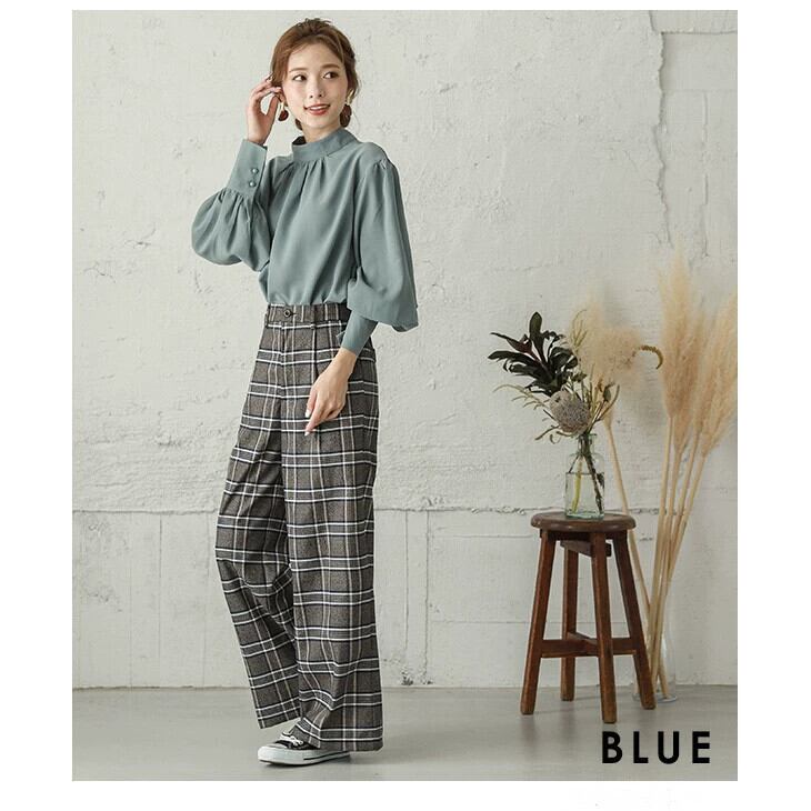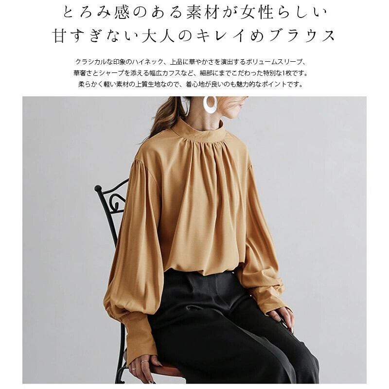 シフォンシャツ女性 22 春の新スタイルパフスリーブスタンドカラールーズプリーツ都会的エレガントプロ長袖シャツ ロング スプリング 春物 cat860746086016