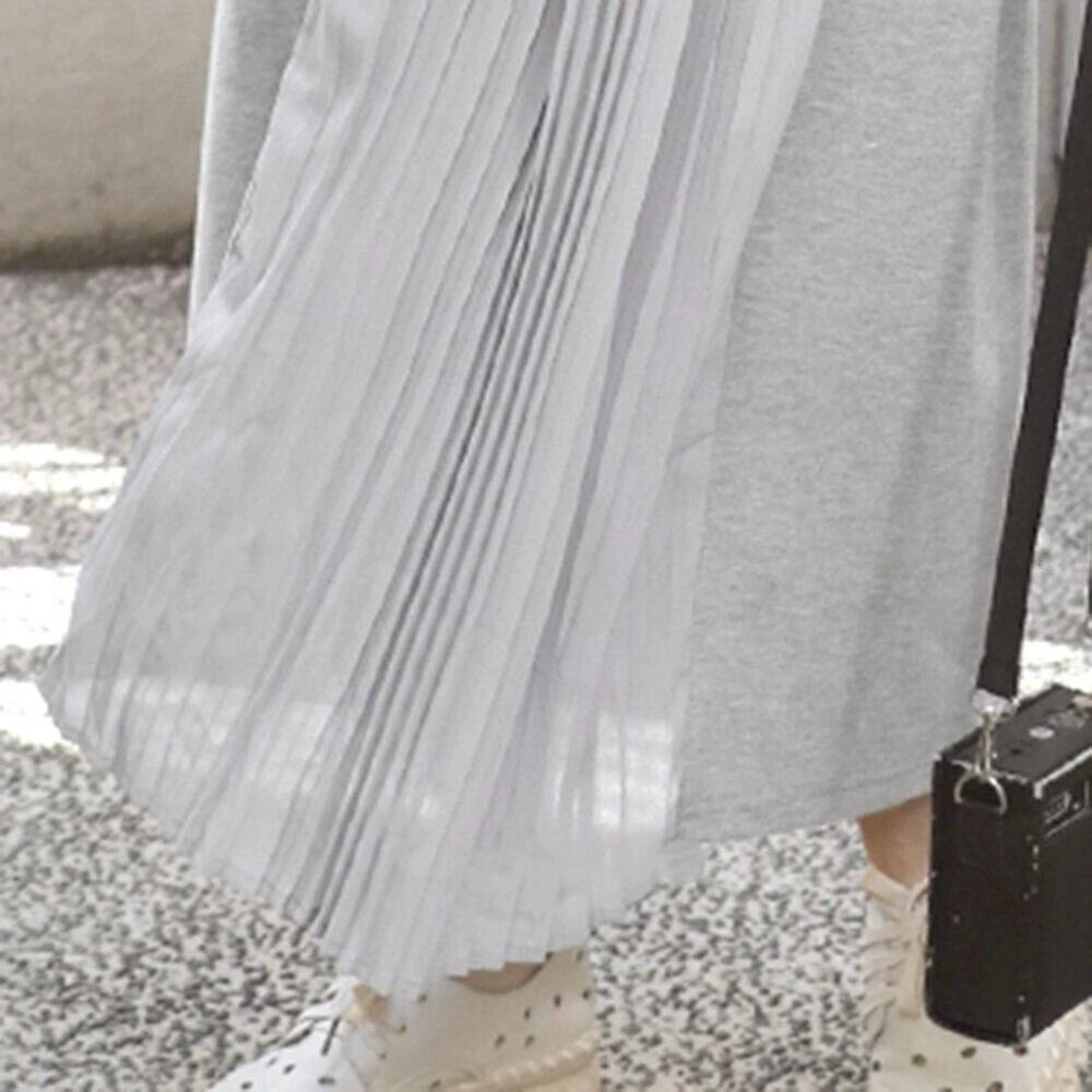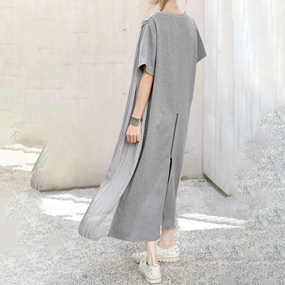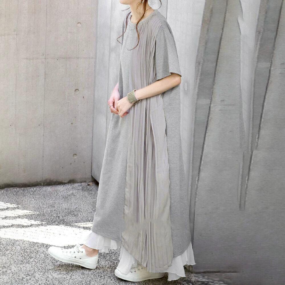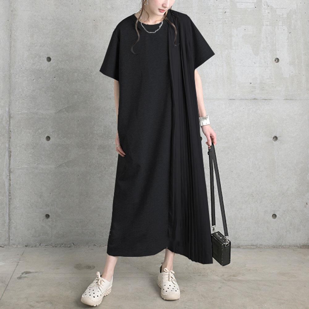 ese スタイル 2022 夏文学スタイル無地シンプルな気質ルーズプリーツステッチ痩身大きいサイズドレスロングスカート女性 大きめサイズ サマー 夏物 ソリッドカラー cat88903432674