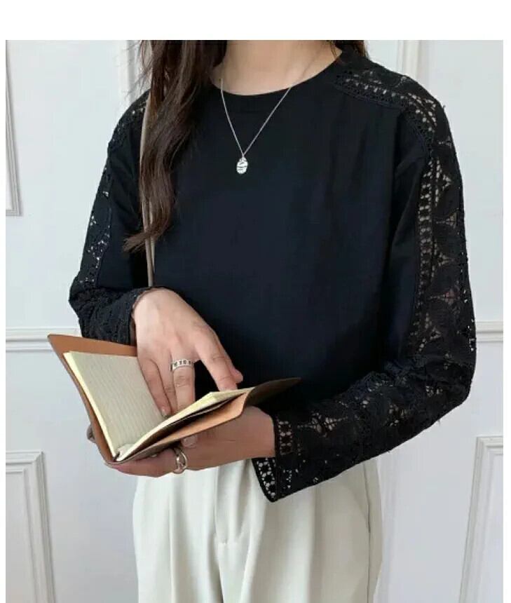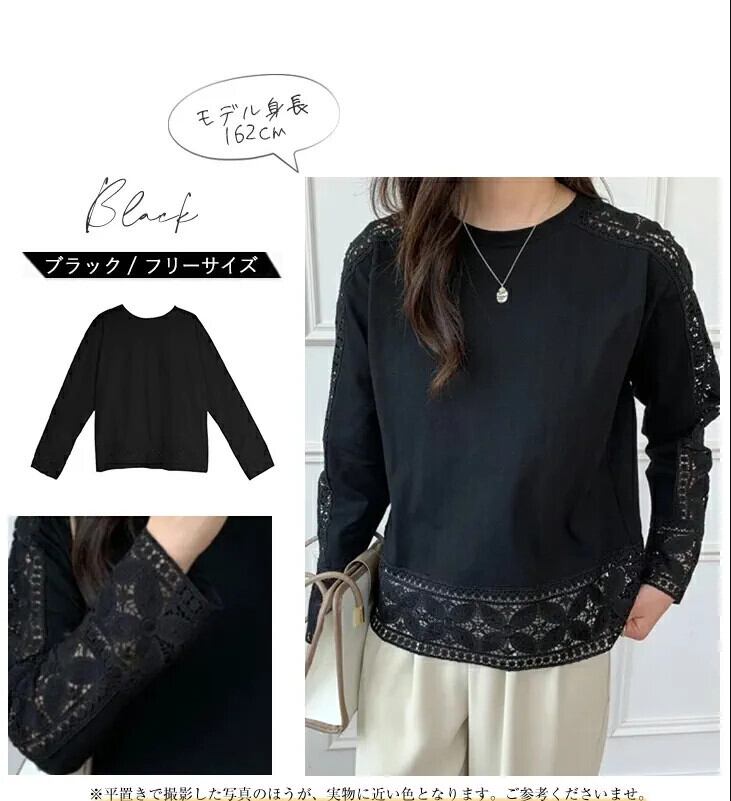 ese 春と秋の新作婦人服レーススプライシングラウンドネックラグランスリーブ長袖トップス Tシャツ 2 色 ロング スプリング 春物 オータム 秋物 Oネック cat889084006559