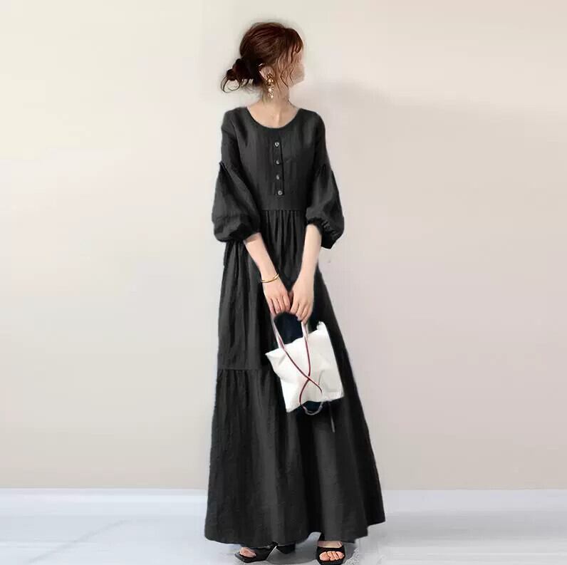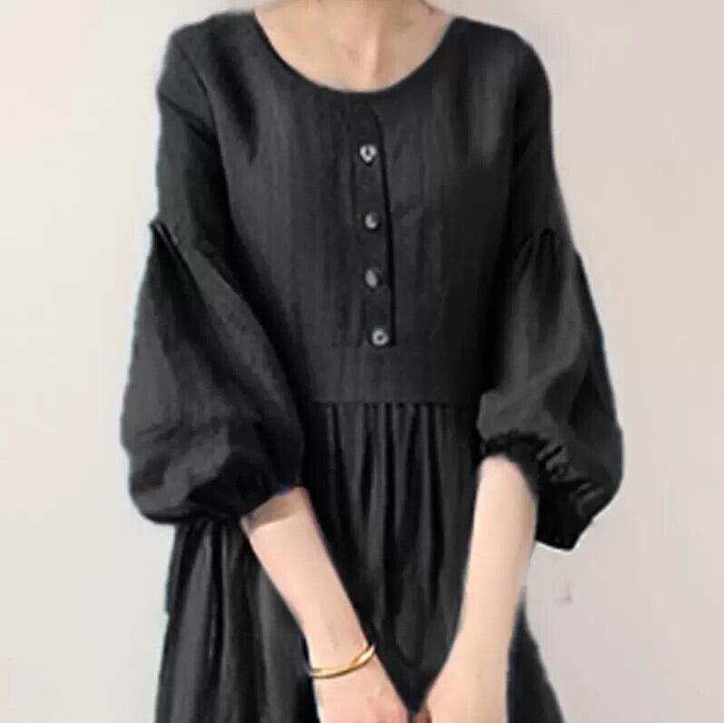 越境eign trade eseスタイル2023ラウンドネックハーフカーディガンドロップショルダーランタン七分袖プリーツスプライシングドレス Oネック cat863209043179
