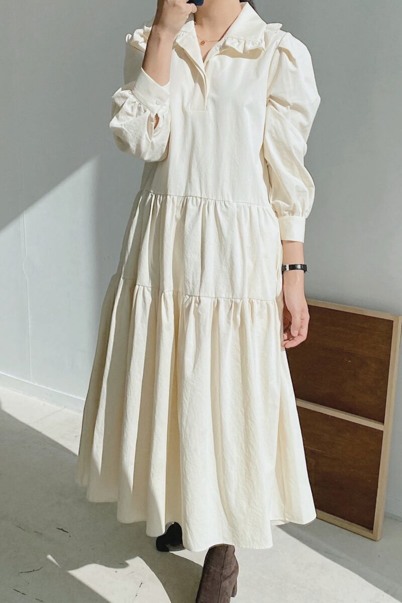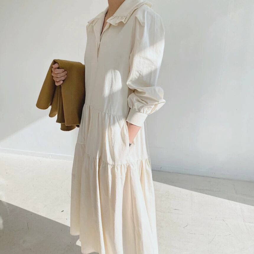 スタイル春の年齢を減らすような人形の襟無地の気質甘いルーズな大きいサイズのシャツスタイルのフルスイングドレス 大きめサイズ 大人ガーリー スウィート キュート カジュアル スプリング 春物 ソリッドカラー cat859931978502