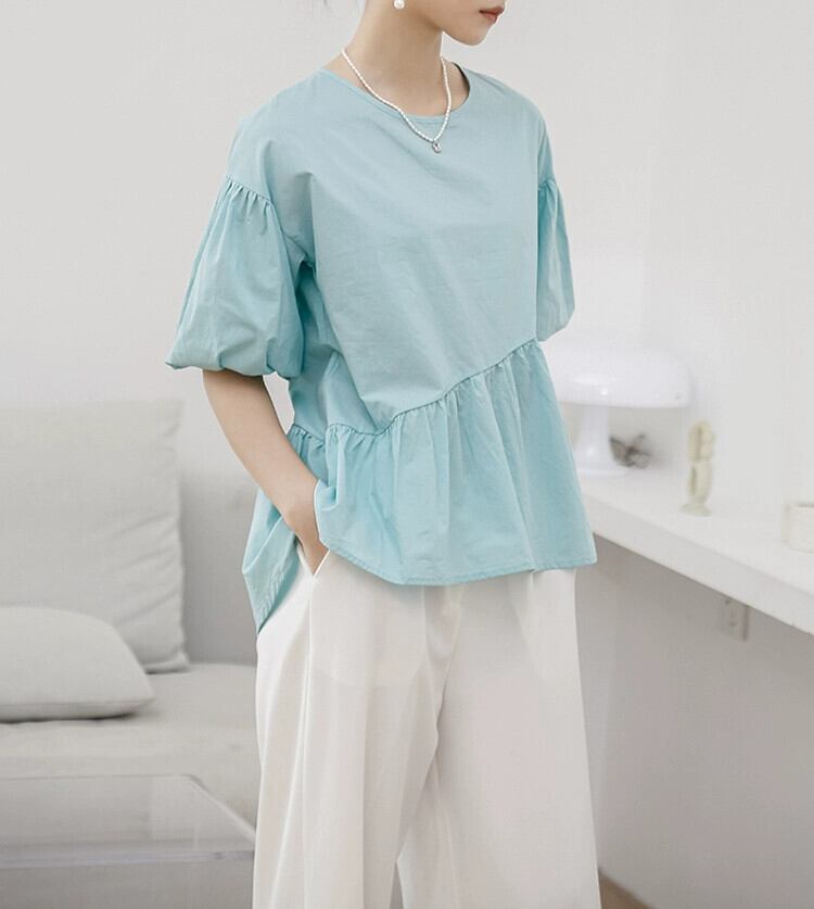 ese and super ins 夏新製品 2021 綿 comtable プルオーバーシャツ女性のパフスリーブデザインシャツ コットン サマー 夏物 cat845181434012