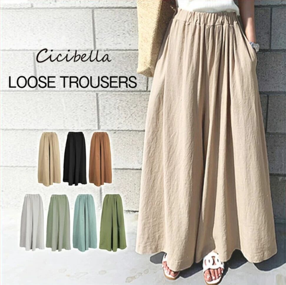 ese と 2023 夏の女性のファッション無地綿とリネン弾性ハイウエストワイドレッグパンツルーズウエスタンスタイルカジュアルパンツズボン コットン エラスティック 伸縮 サマー 夏物 ソリッドカラー cat810375663416