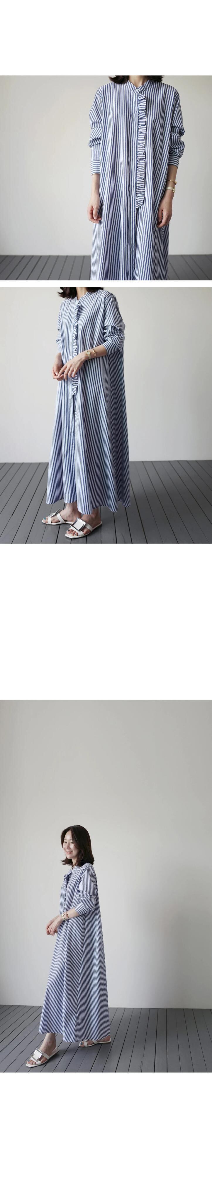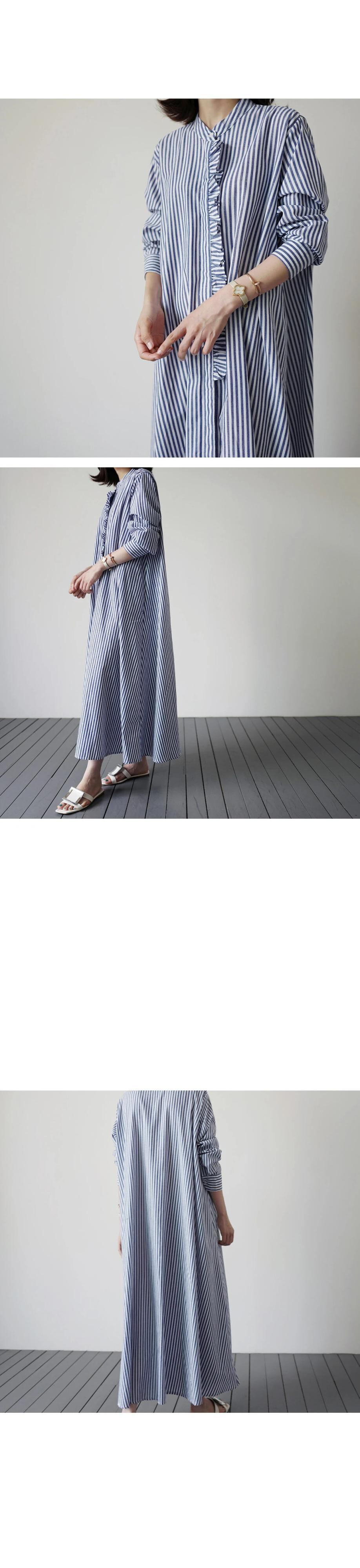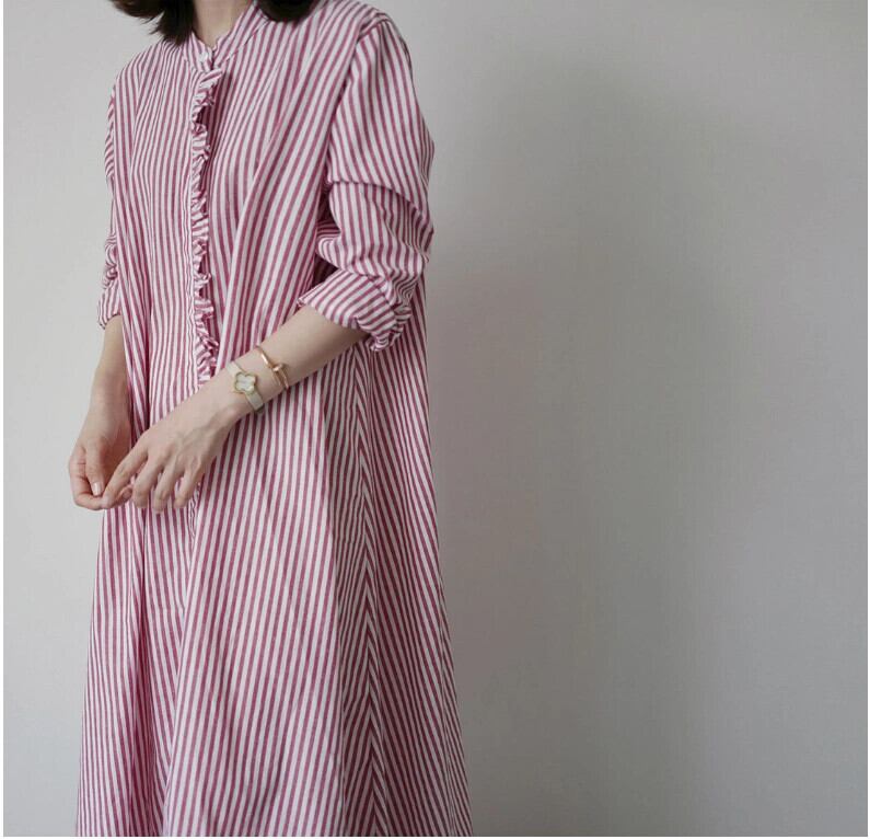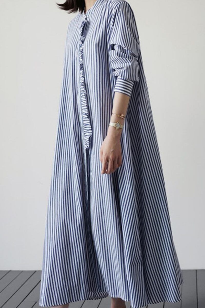 スタイルストライプ長袖シャツ女性膝上ロングスタンドカラーフリルルーズ大きいサイズケープシャツドレス 大きめサイズ cat8908738898
