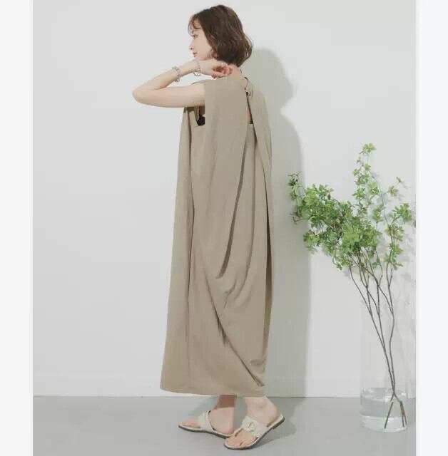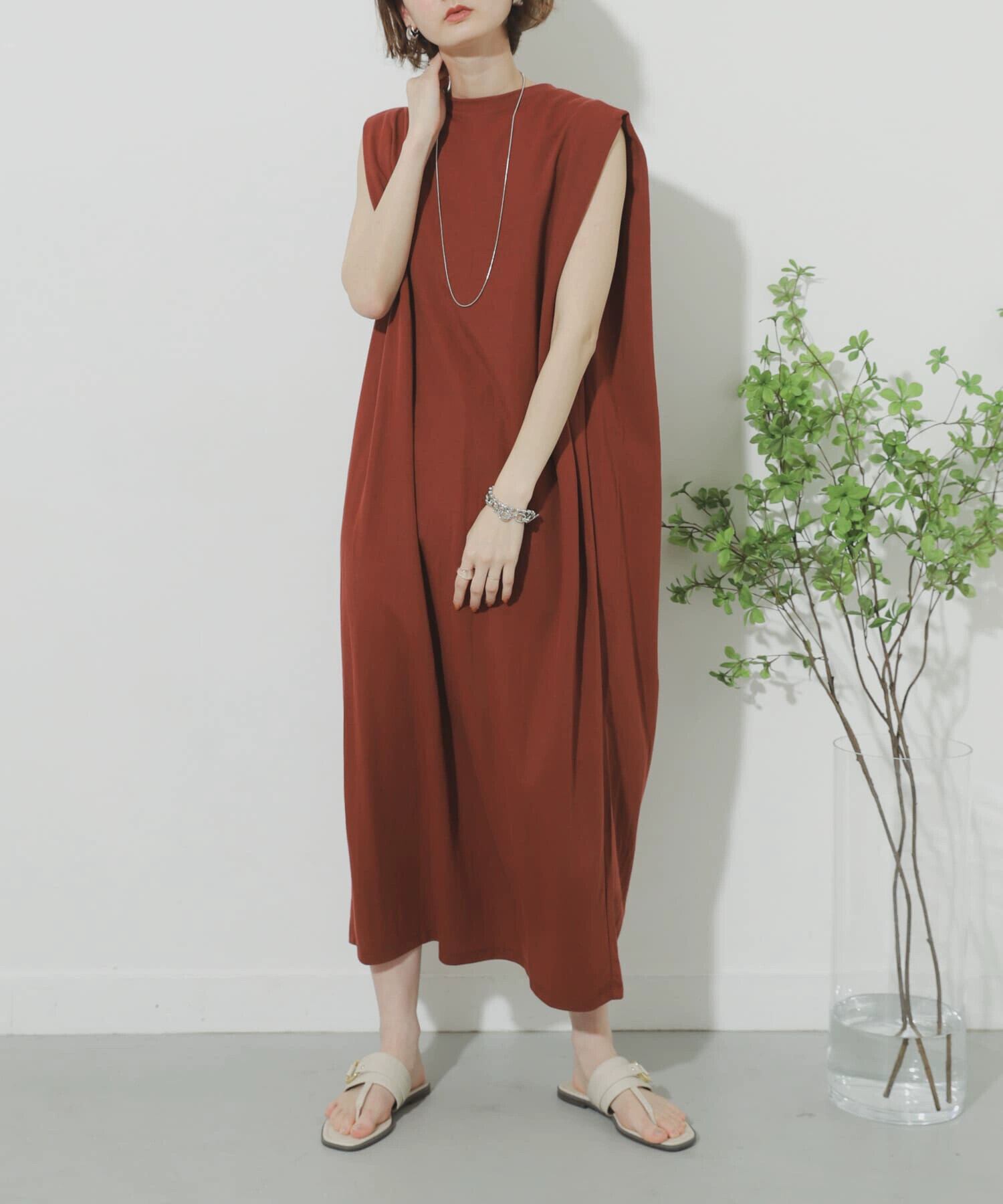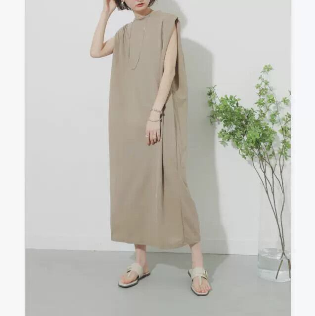 2021 シックなシンプルなカジュアルノースリーブドレスの女性の夏のファッションエレガントな立体裁断膝丈ミドルスカート サマー 夏物 cat838862128546