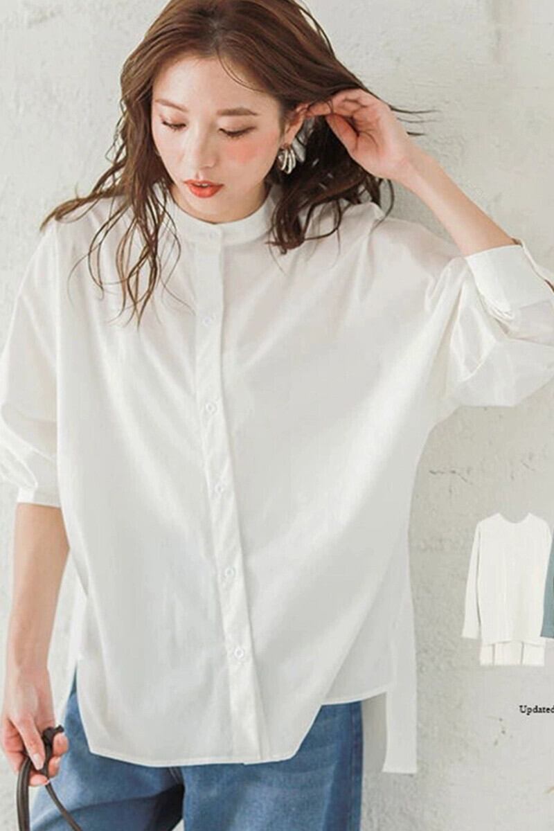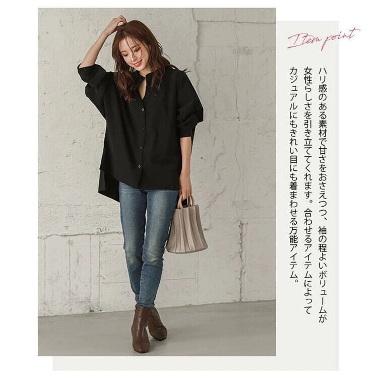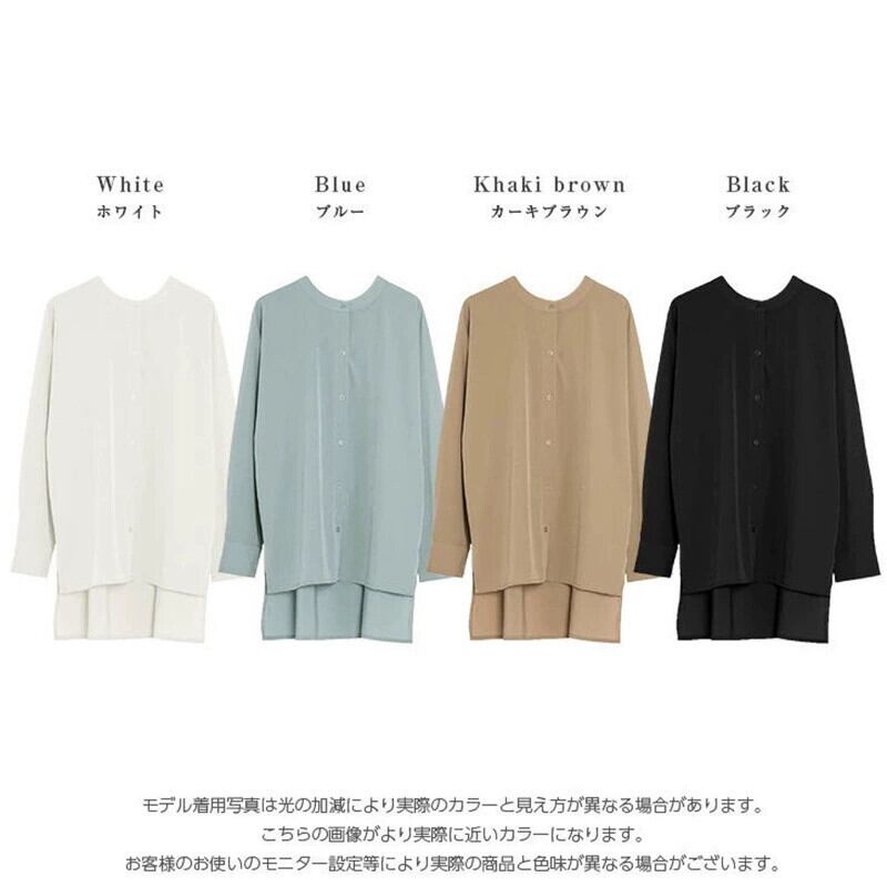 ese と 2021 夏の新バットスリーブルーズ長袖シャツ女性の無地スタンドカラーデザイン日焼け止めシャツ ロング サマー 夏物 ソリッドカラー cat826716171509
