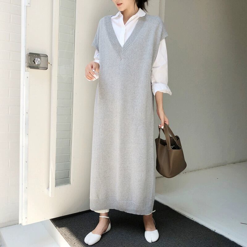 2021 秋冬スタイルゆったり大きいサイズロングベストニットドレスバットスリーブ万能セータードレス 大きめサイズ オータム 秋物 ウィンター 冬物 cat846243855150