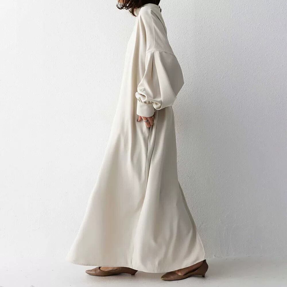 ese and style ins 女性のドレス 2022 新しい eign trade ラウンドネックルーズスリムランタンスリーブシングルブレストロングスカート Oネック cat828290550875