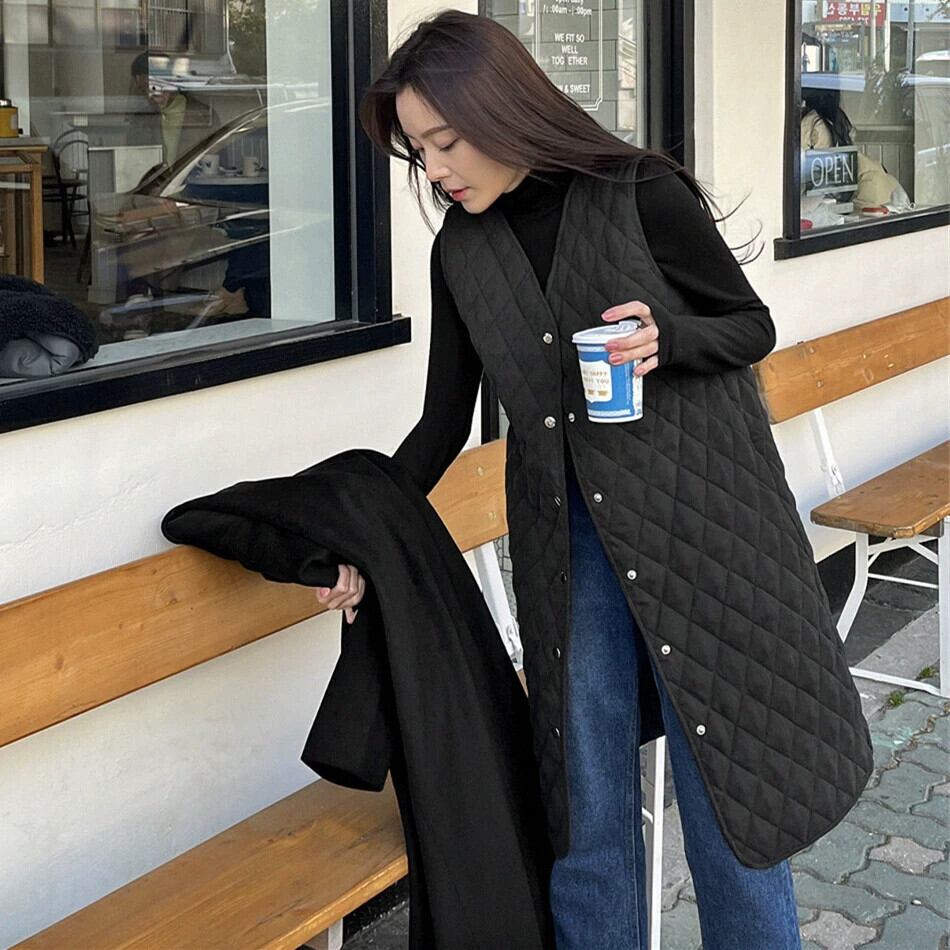 シングルブレスト多用途暖かいキルティングコットンベストジャケット 2023 秋と冬の新しい小さなノースリーブミッドレングスのコットンベストの女性 オータム 秋物 ウィンター 冬物 cat814993070366