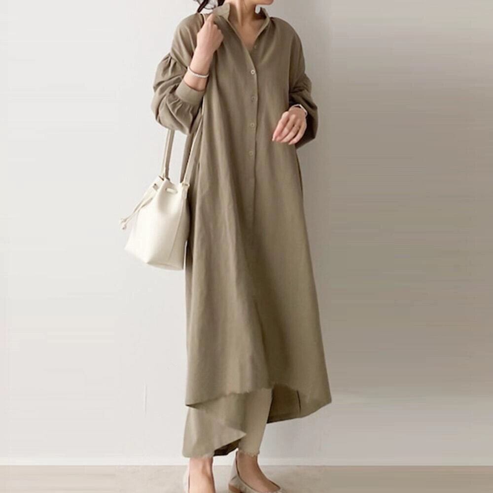 シックで新しいゆったりとした怠惰なスタイル、シンプルで通気性があり、快適な秋のロングシングルブレストシャツドレスの女性 オータム 秋物 cat835377541733