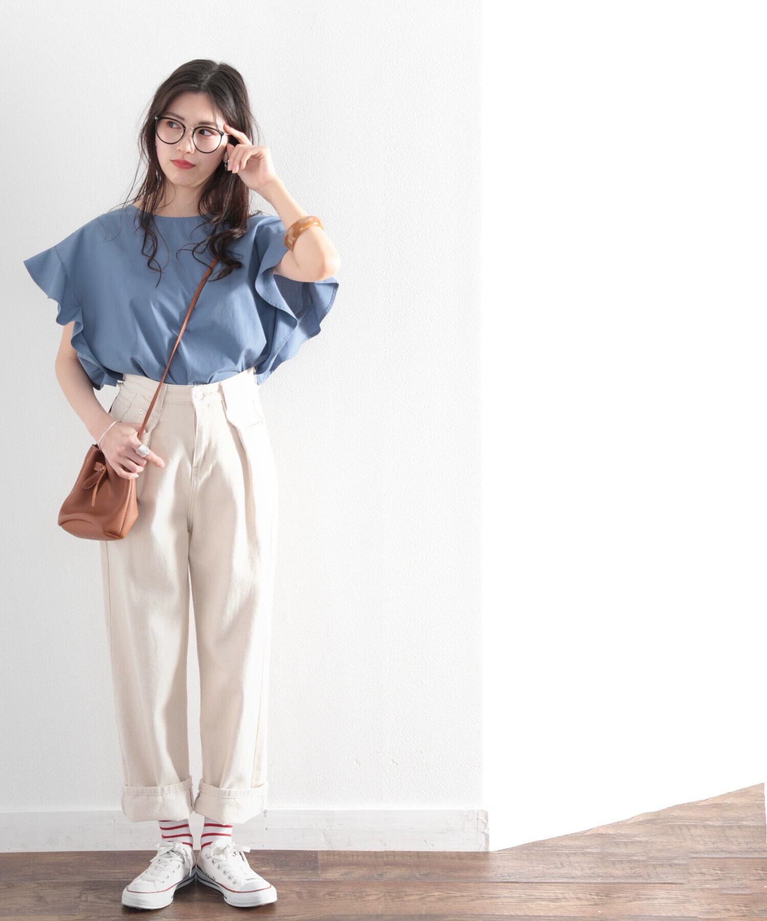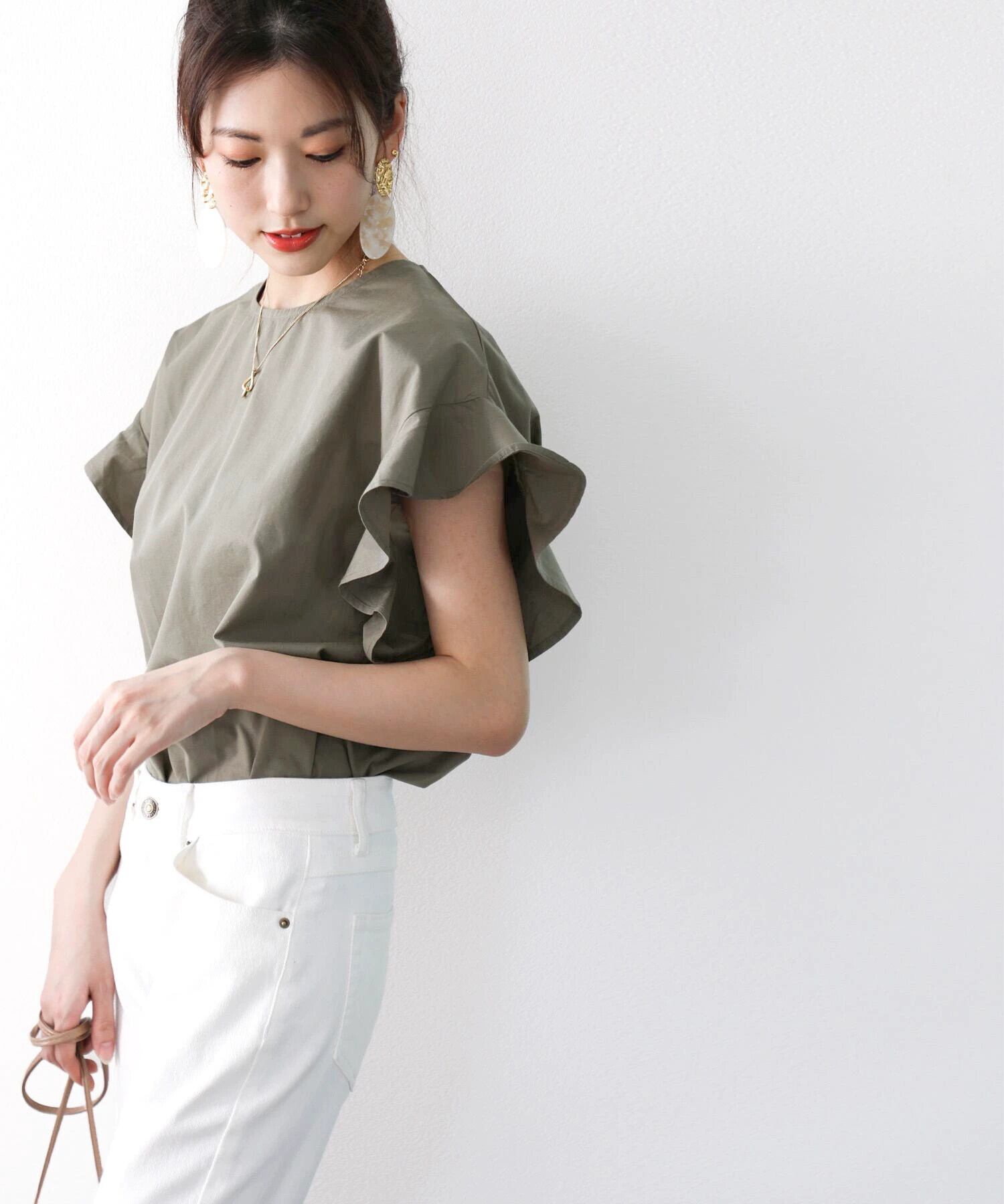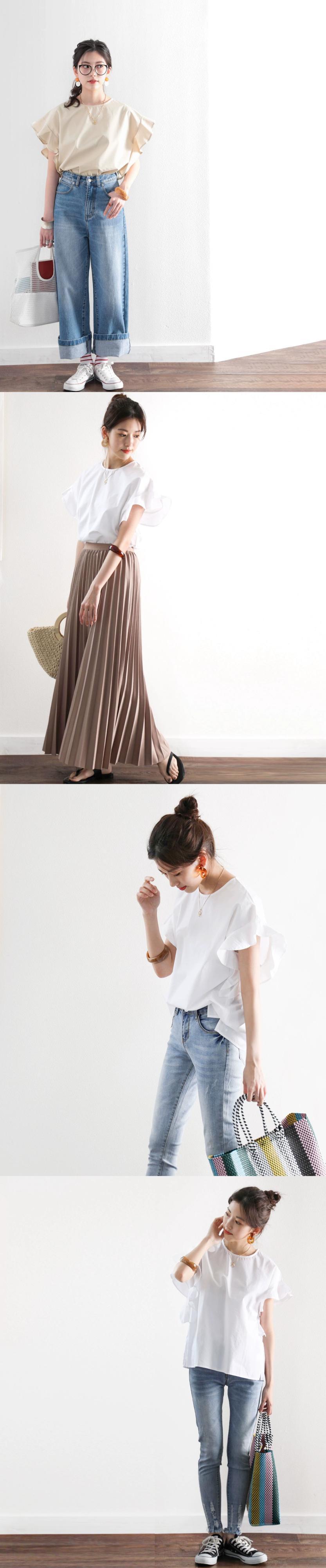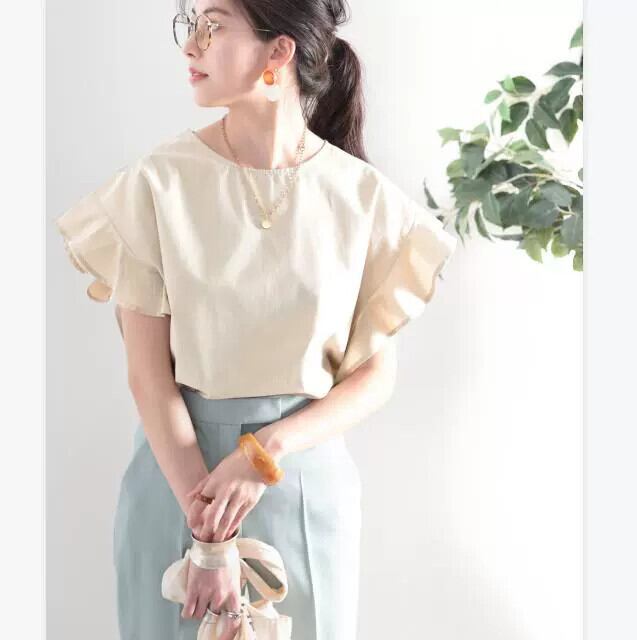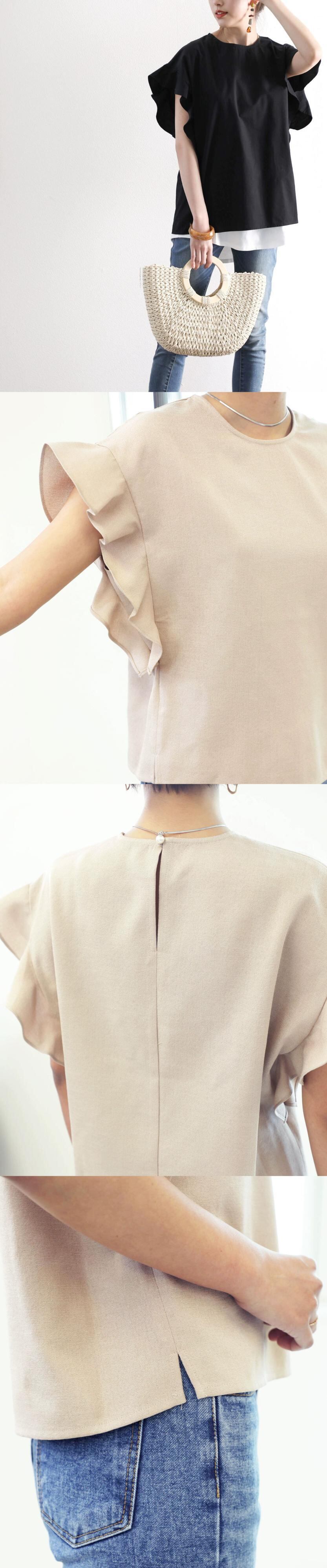 2021 ese と新しいスタイルの夏のシンプルでファッショナブルなフリル半袖シャツラウンドネックルーズ痩身トップス女性 サマー 夏物 Oネック cat869436483035