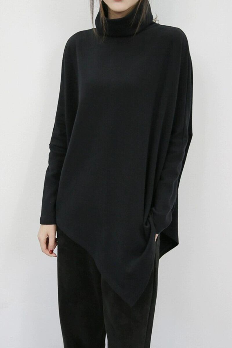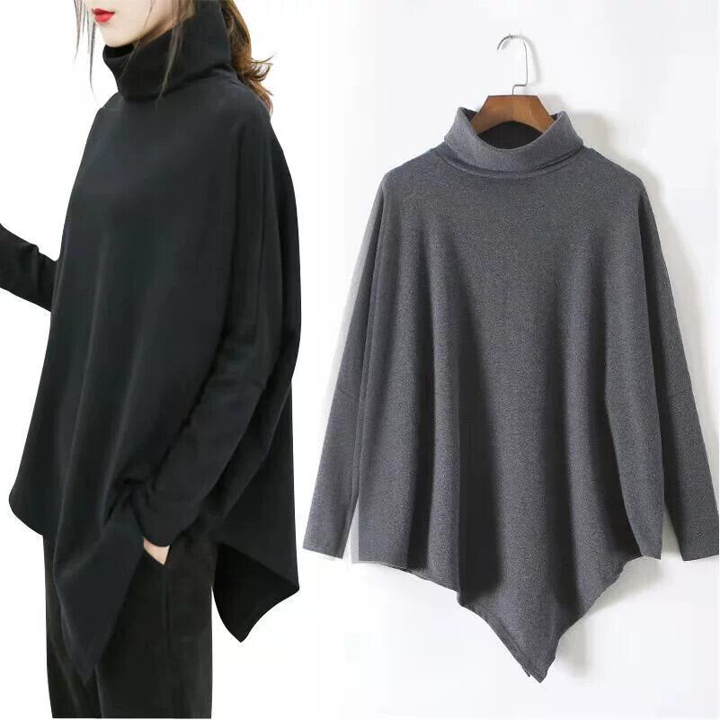襟 tシャツ女性秋と冬の新しいスタイルルーズ大きいサイズ中長身ヨーロッパとアメリカンスタイルカジュアルバットシャツ不規則なトップトレンディ ロング 大きめサイズ オータム 秋物 ウィンター 冬物 ヨーロピアン cat829948803171