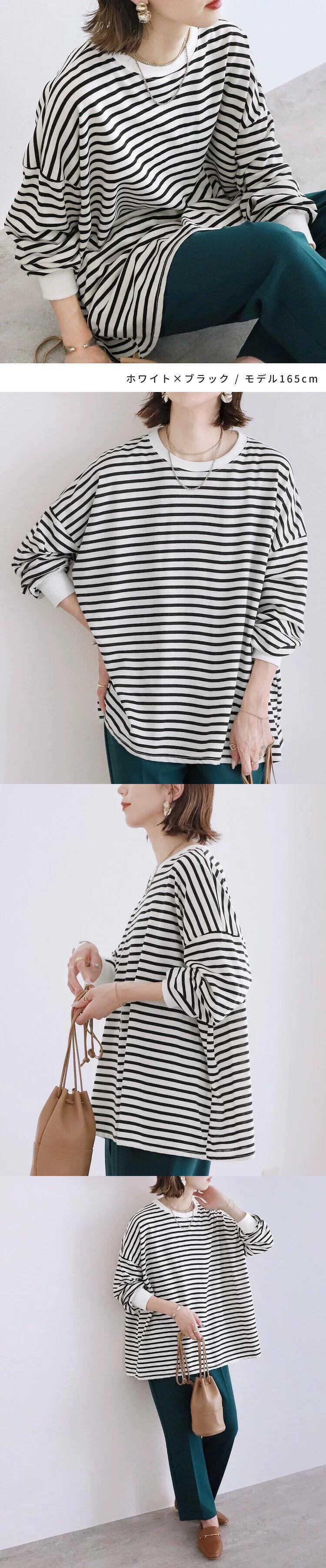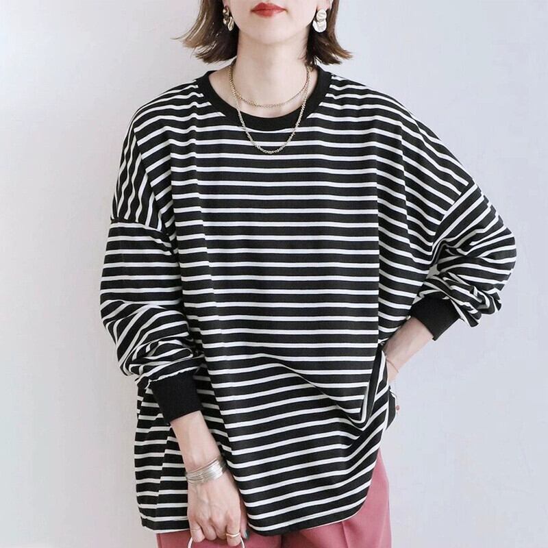 ese とインターネット有名人の新製品 2023 秋と冬のストライプのスウェットシャツの女性のルーズコットンラージバージョンボトミングトップ女性 オータム 秋物 ウィンター 冬物 cat866201978534