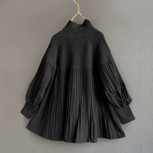 ese 4 色スポット 2023 秋冬ランタンスリーブヘップバーンスタイルリトルブラックドレスプラスサイズ脂肪 mm 年齢削減痩身ニットスカート 大きめサイズ オータム 秋物 ウィンター 冬物 cat857884982474