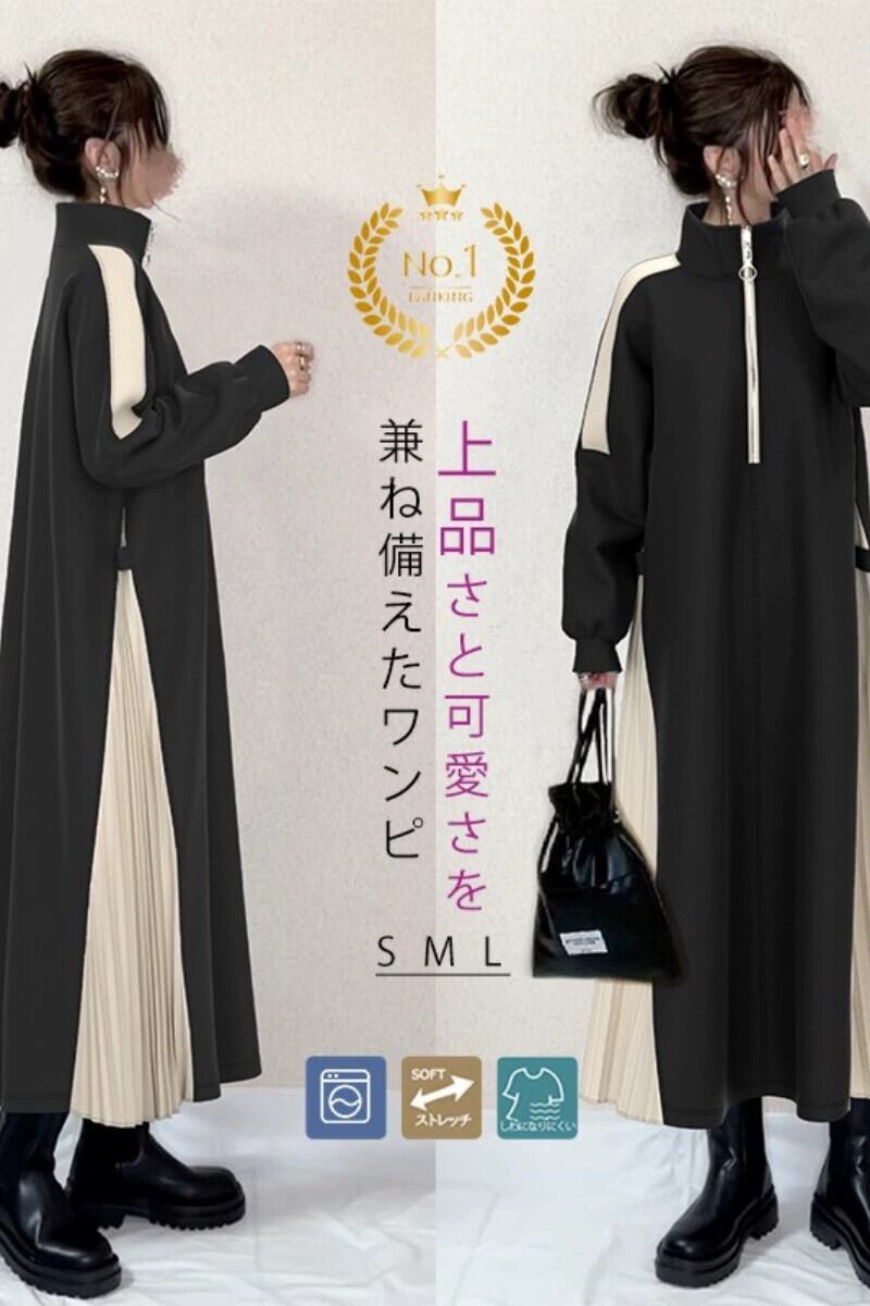Spot ese 2023秋冬新作ロングスウェットシャツコントラストカラードレス オータム 秋物 ウィンター 冬物 cat820518944439