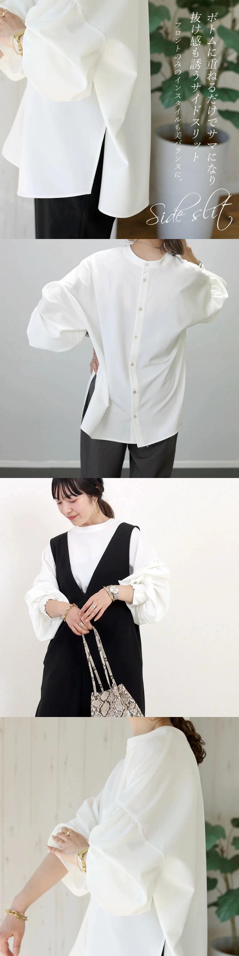 越境eign trade楽天秋エセ風ニッチデザインラウンドネック大きいサイズトップス長袖スリットシャツレディース ロング 大きめサイズ オータム 秋物 Oネック cat867314662088