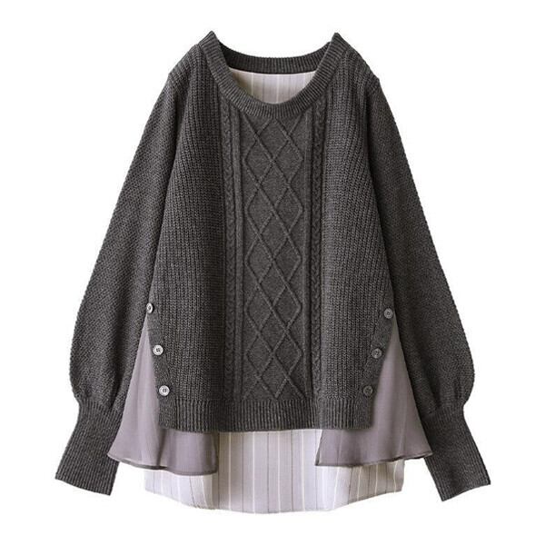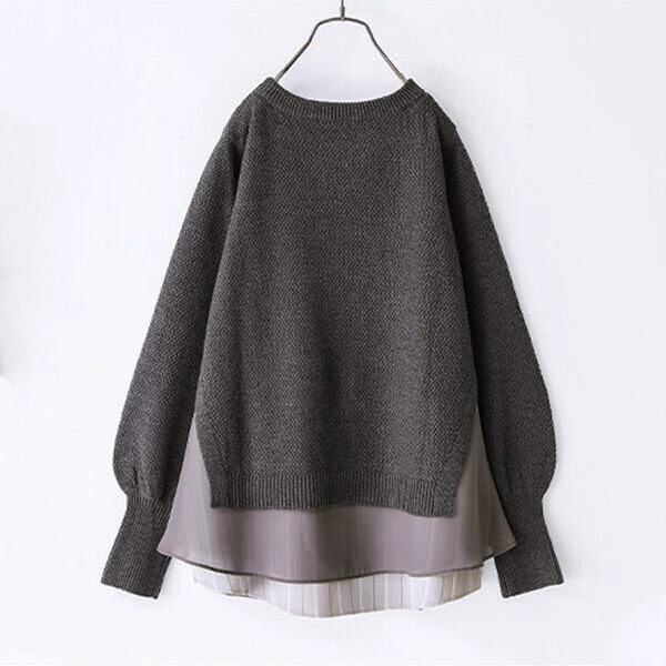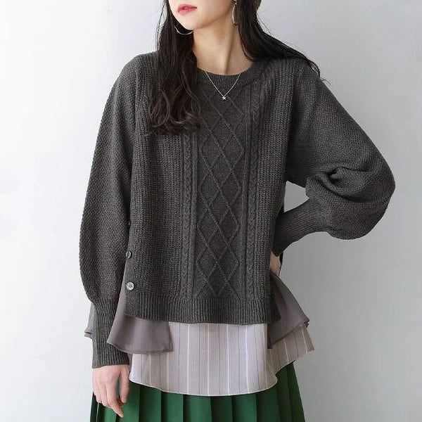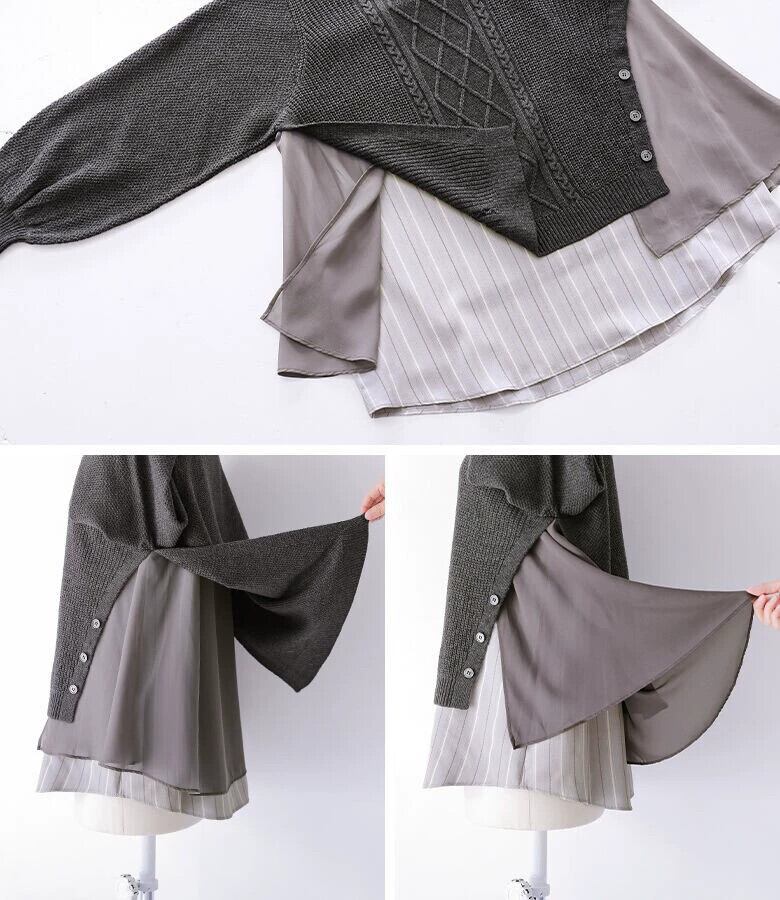 スポット ese 2023 秋冬新作フェイクツーピースプルオーバーラウンドネック長袖パッチワークセーター ロング オータム 秋物 ウィンター 冬物 Oネック cat859950378419