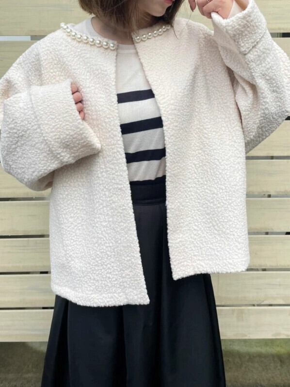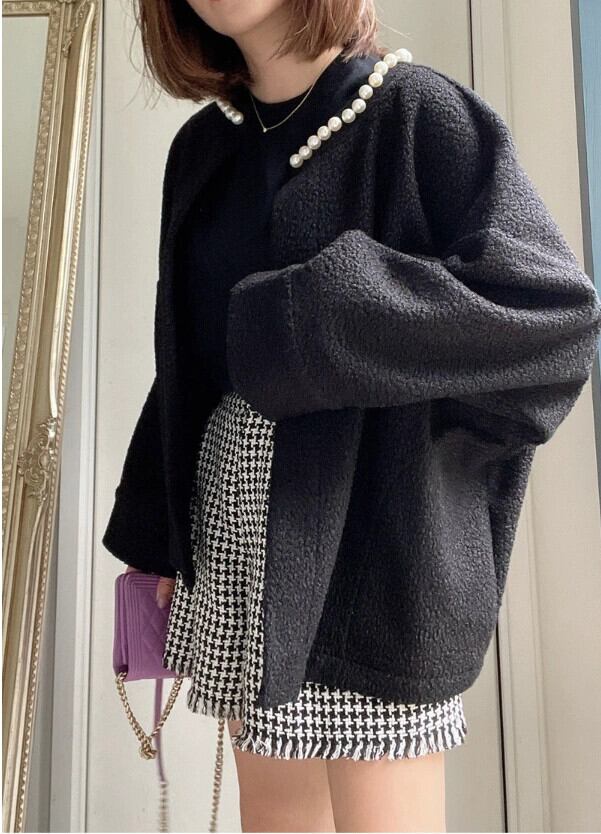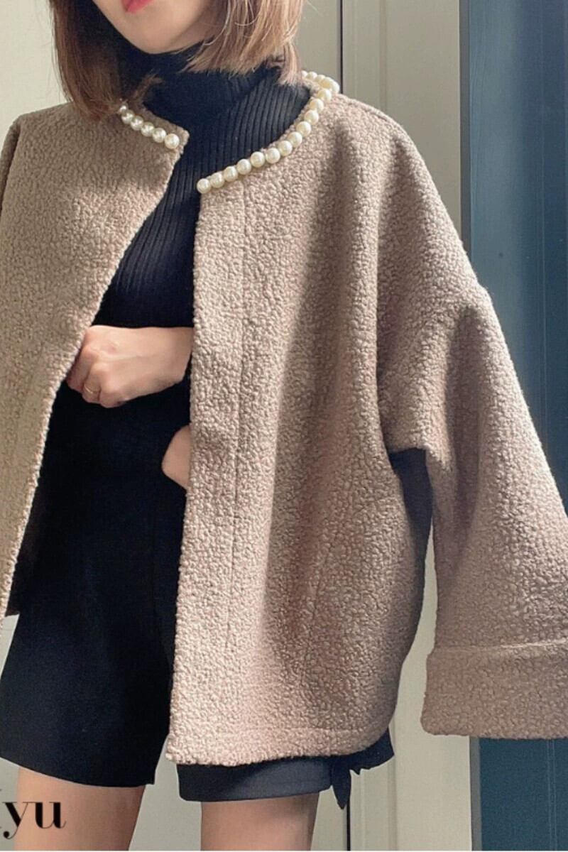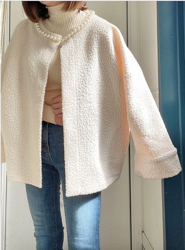 越境貿易ロッテ秋と冬の新しいラウンドネックビーズ繭型ショートラムウール肥厚カジュアルジャケット女性 オータム 秋物 ウィンター 冬物 Oネック cat847809249870