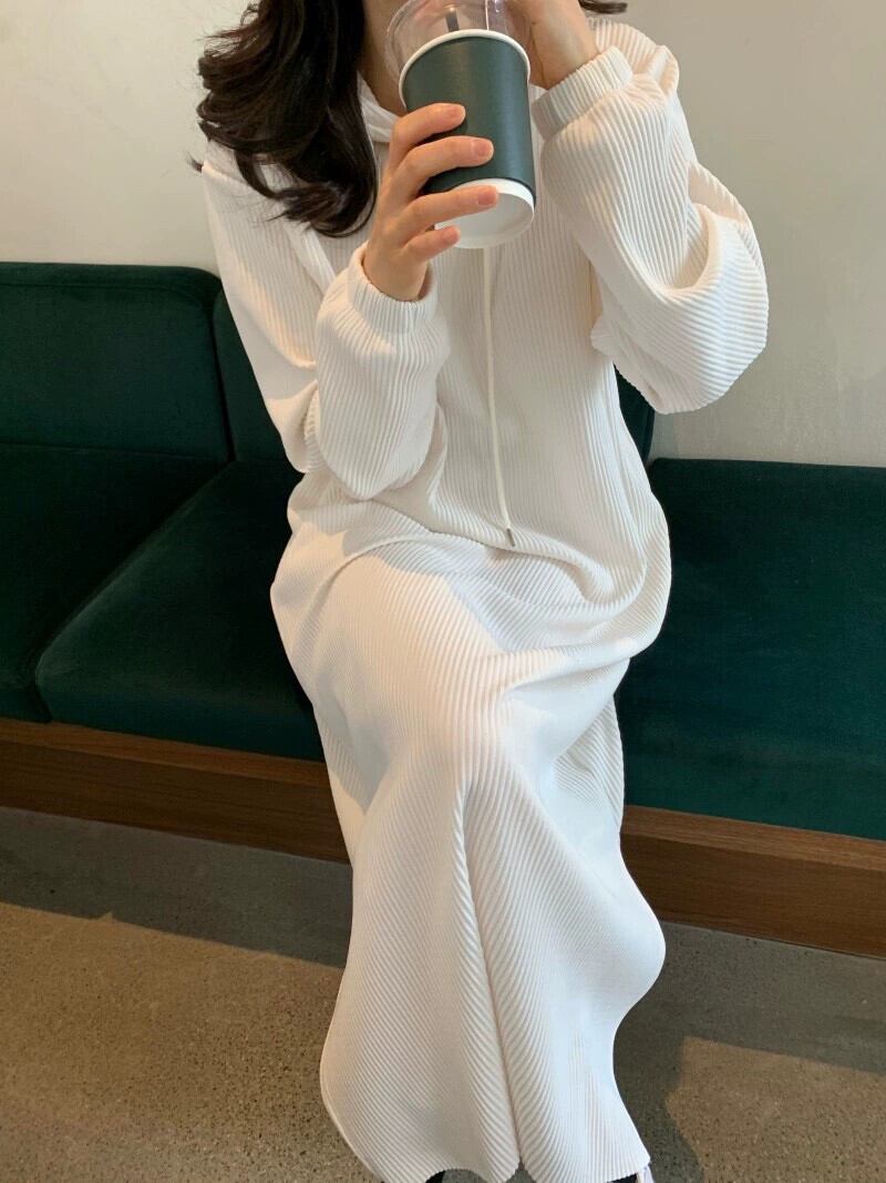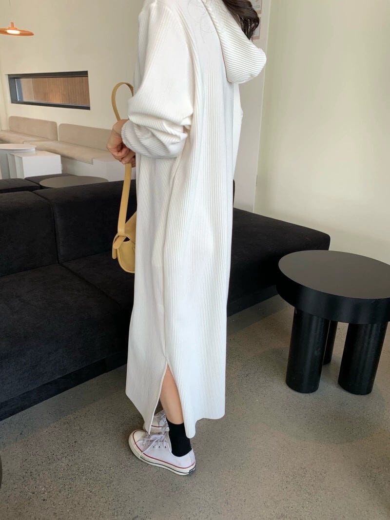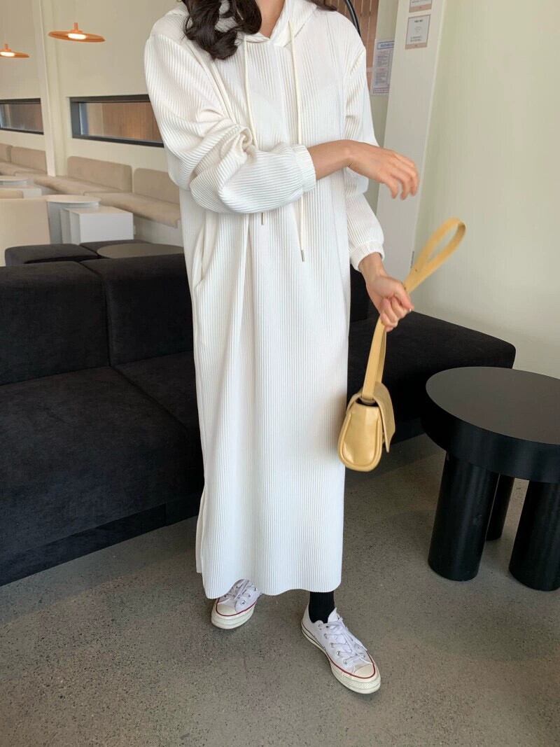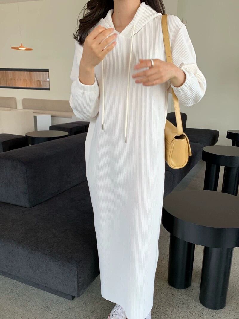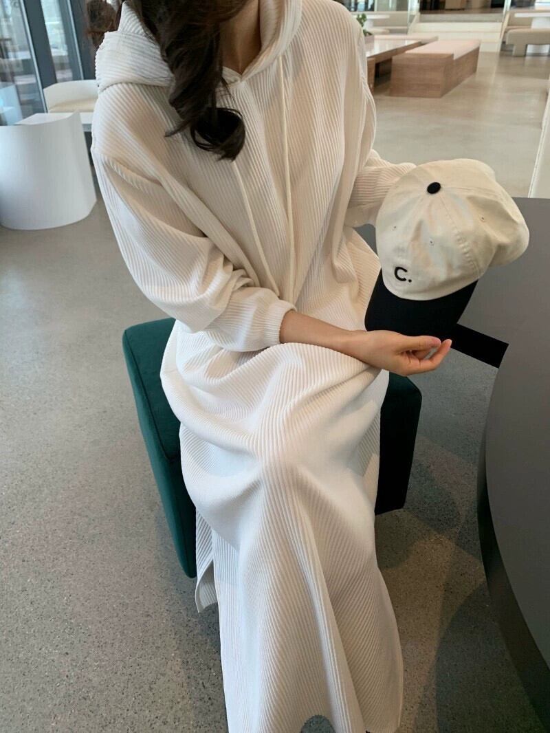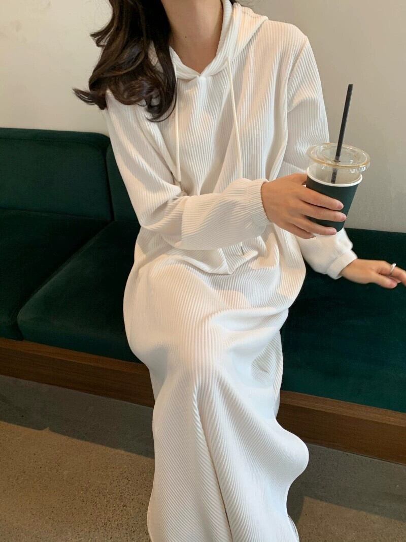 シックなスタイル巾着フード付きプルオーバールーズカジュアルロングサイドスリットドレス女性秋の新スタイル オータム 秋物 cat883591407103