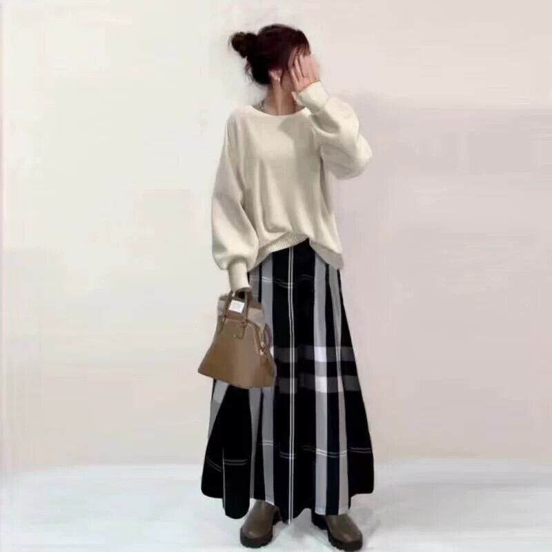 越境ロッテ永貿易新作秋冬ニットセーター+チェック柄スカートスーツツーピース婦人服準備在庫 オータム 秋物 ウィンター 冬物 cat84554601254
