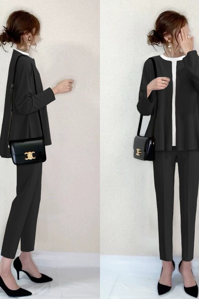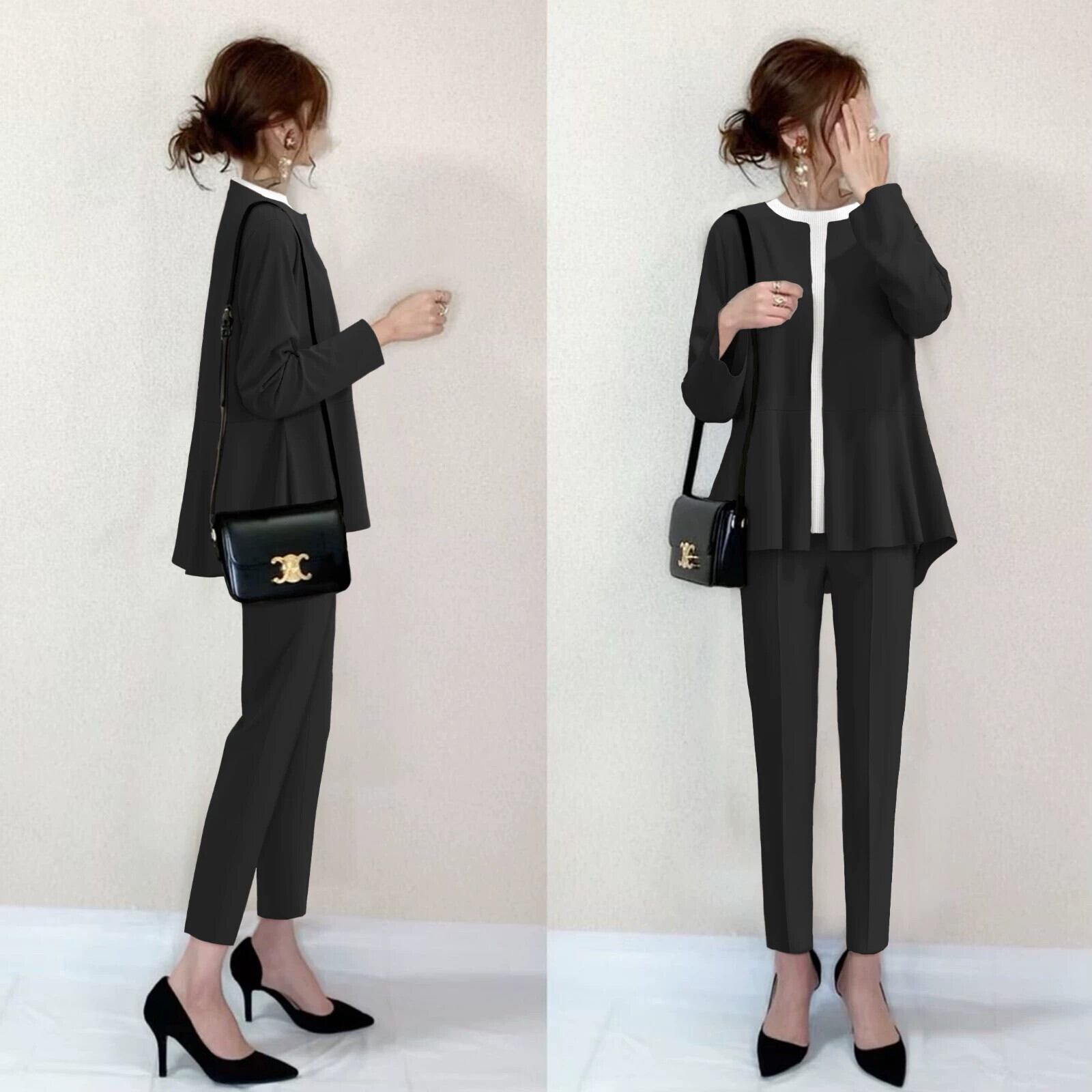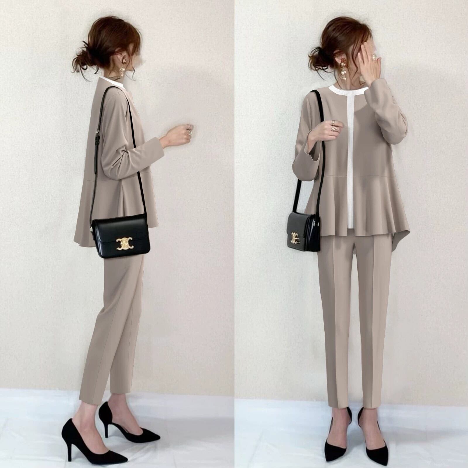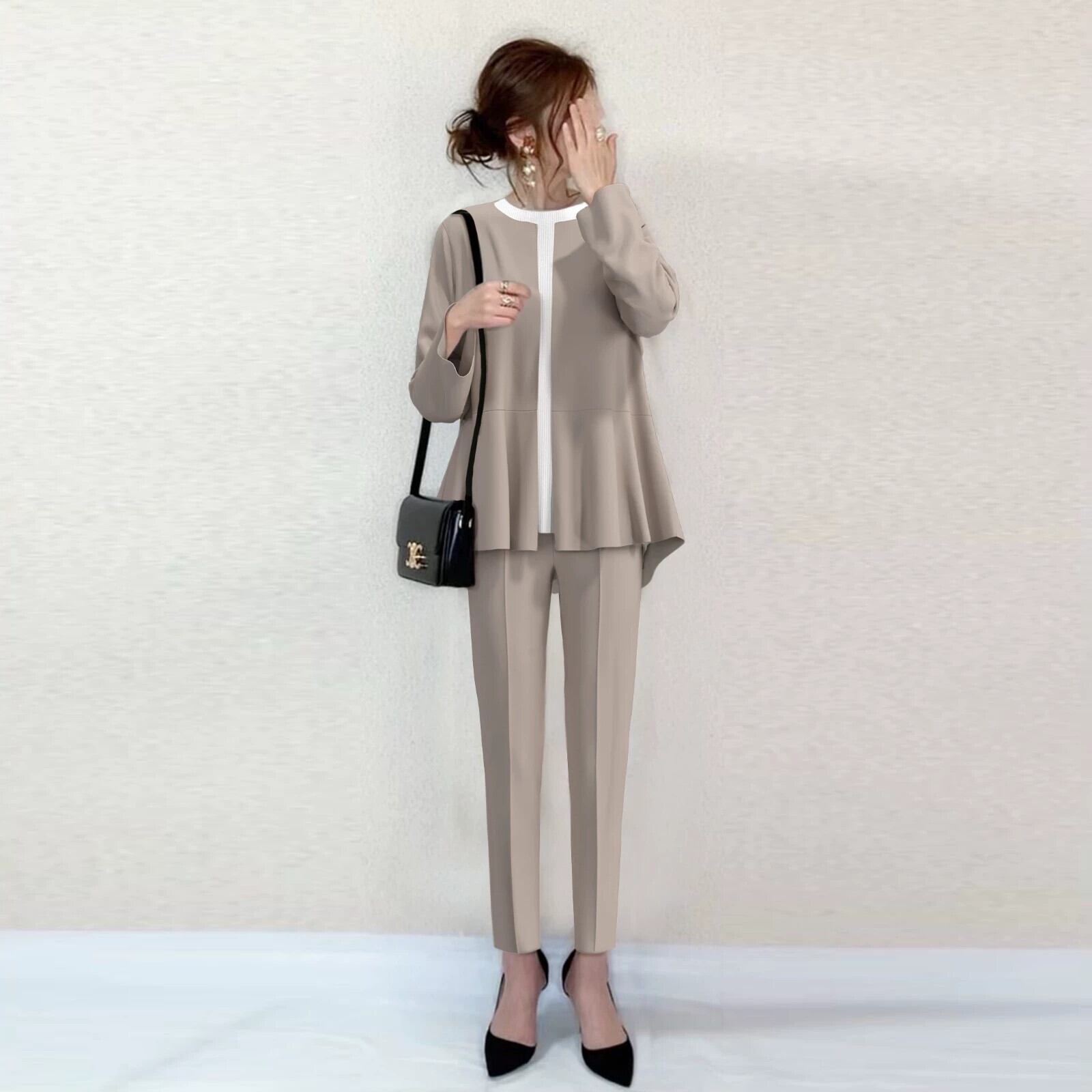 越境ロッテeign trade 2023秋ラウンドネックカーディガンフリルスカートトップ+パンツ9点パンツセット オータム 秋物 Oネック cat887976694607