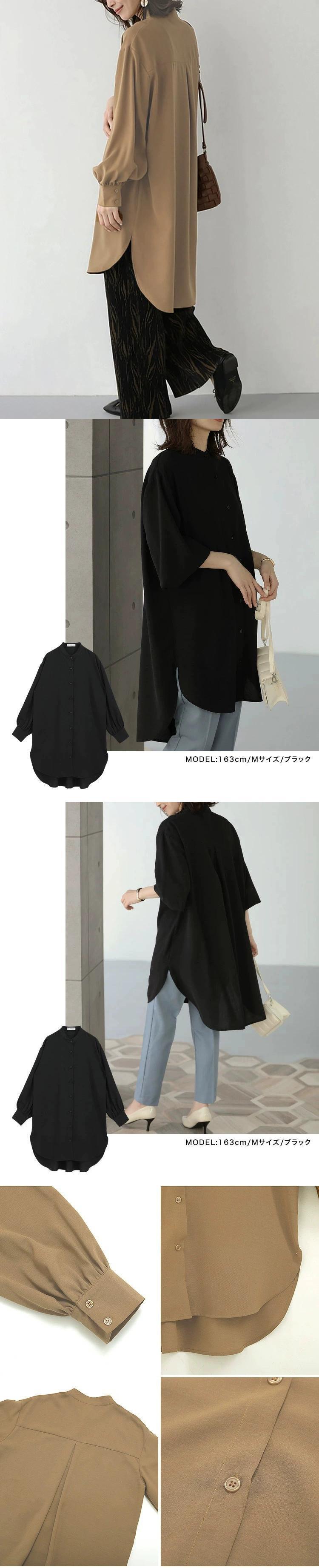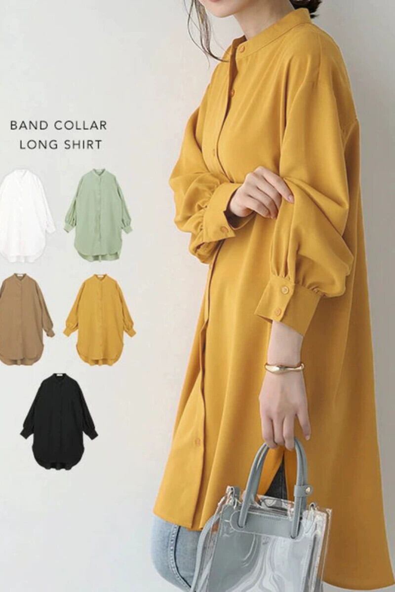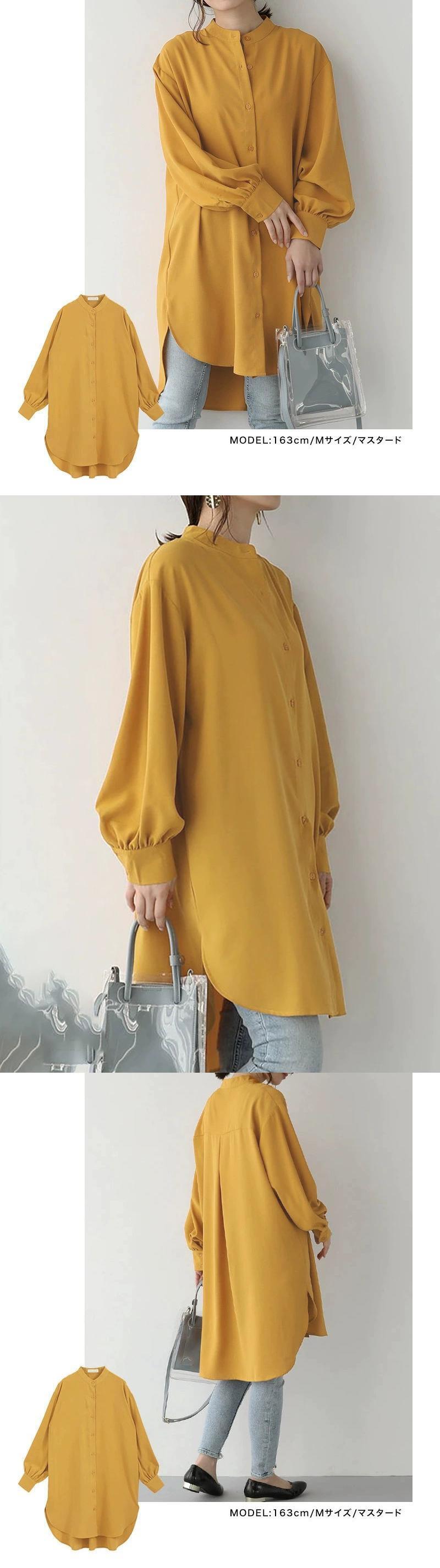 越境楽天の新婦人服気質長袖シャツ女性のゆったりとしたミドル丈のシャツドレス ロング cat833979297613