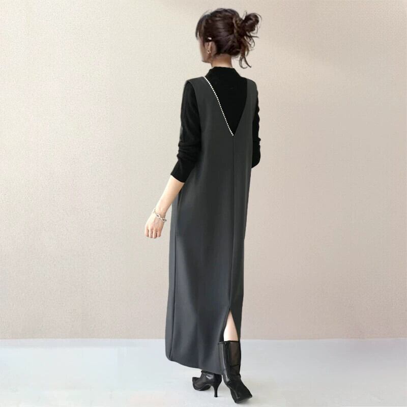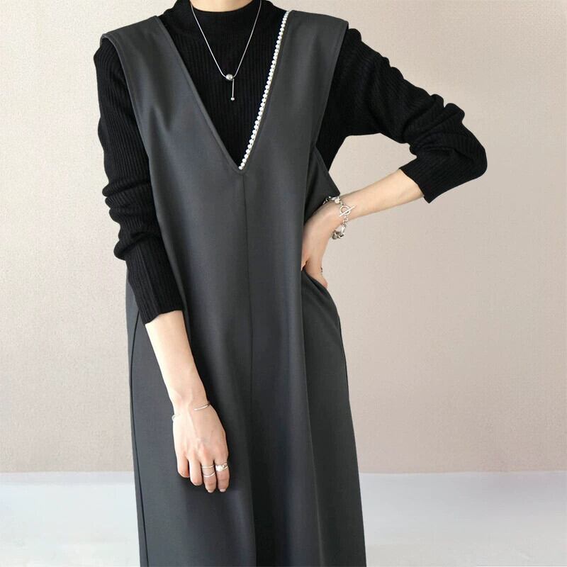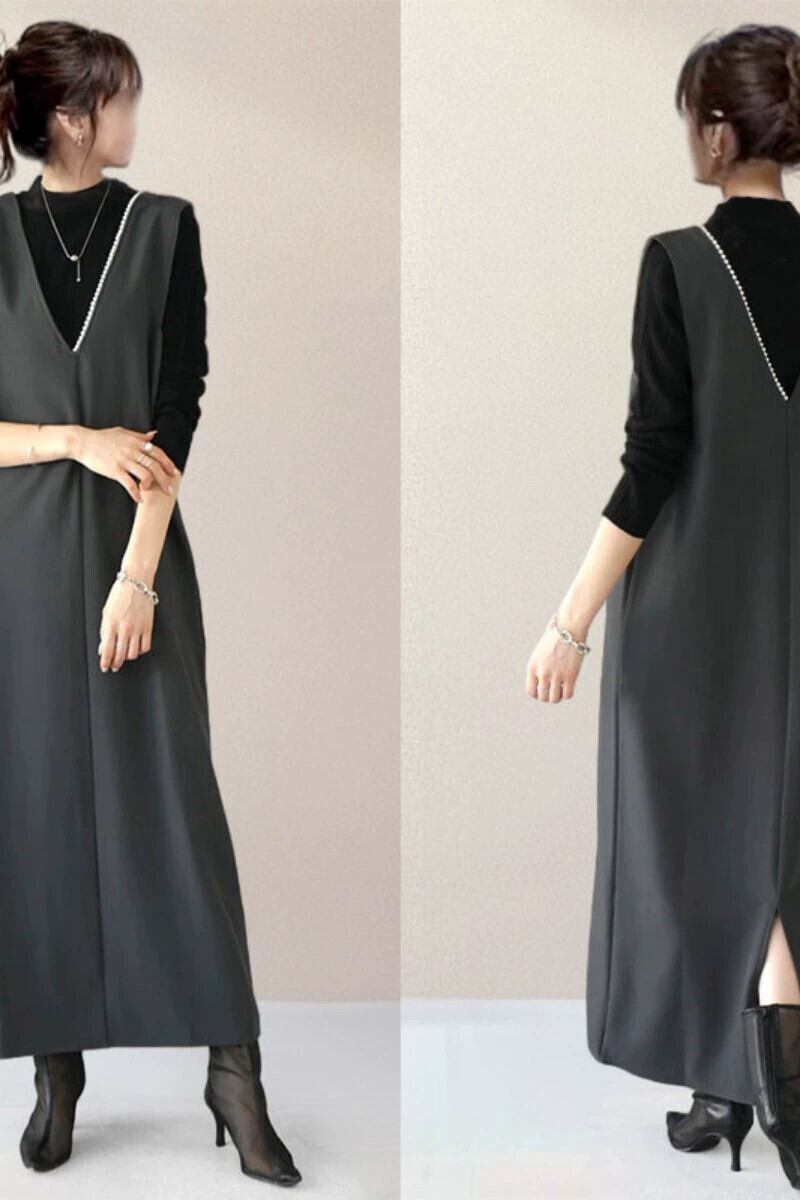 2023春秋冬新作パールVネックノースリーブスプライシングワンピース入荷しました スプリング 春物 オータム 秋物 ウィンター 冬物 真珠 cat892157006807
