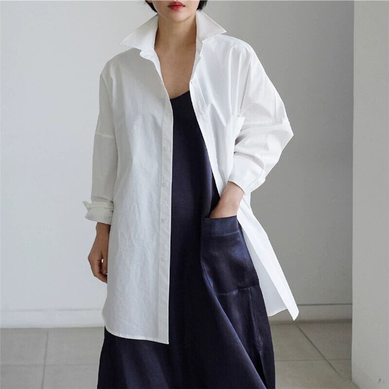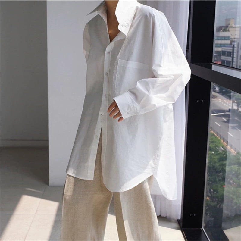 春と秋のスタイルのシャツ女性のルーズな大きいサイズ長袖シャツ多用途なアウター日焼け止めトップストレンディな ロング 大きめサイズ スプリング 春物 オータム 秋物 cat868860009708
