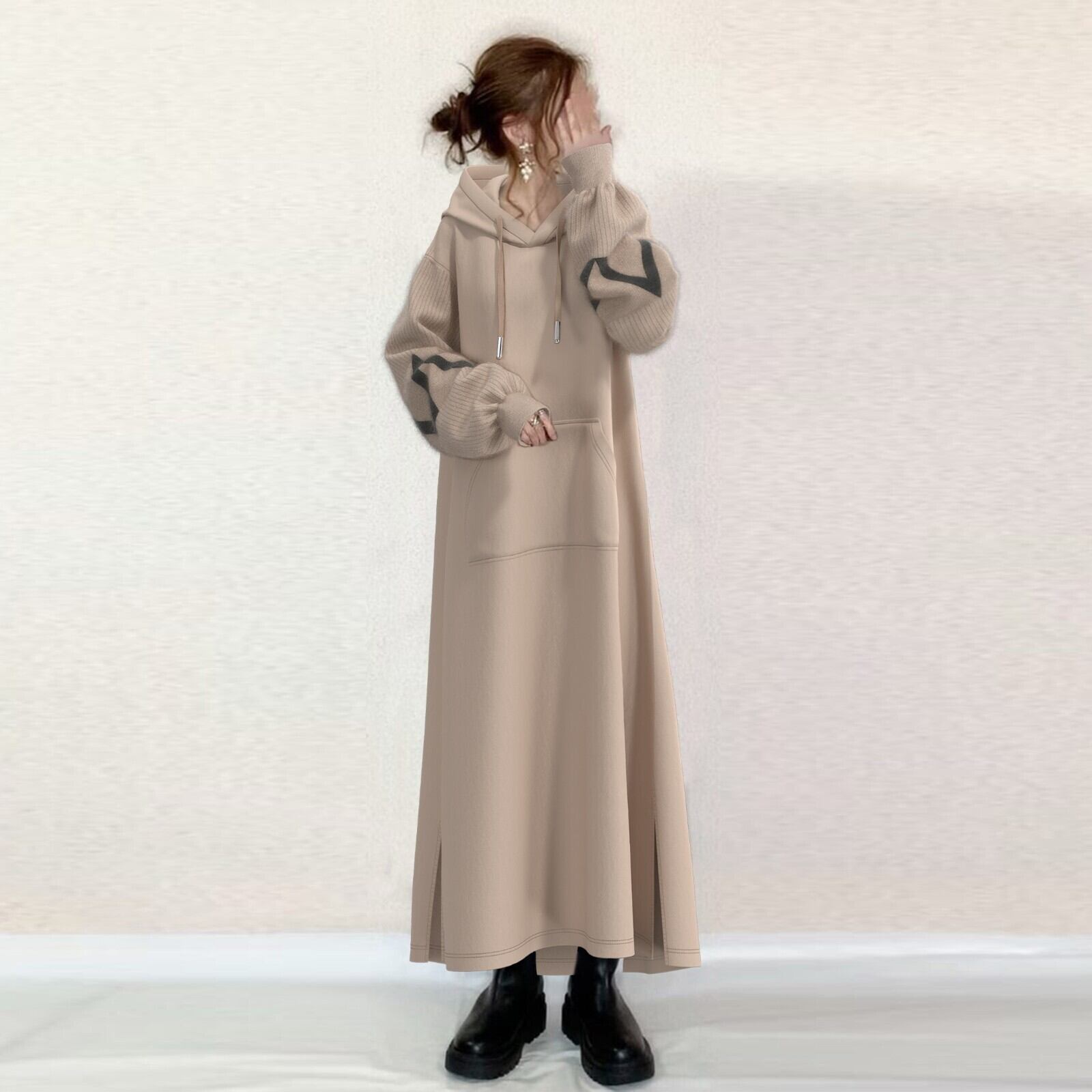 Spot ese 2023秋冬新作フード付きオフショルダースウェットシャツドレス オータム 秋物 ウィンター 冬物 cat871238766951