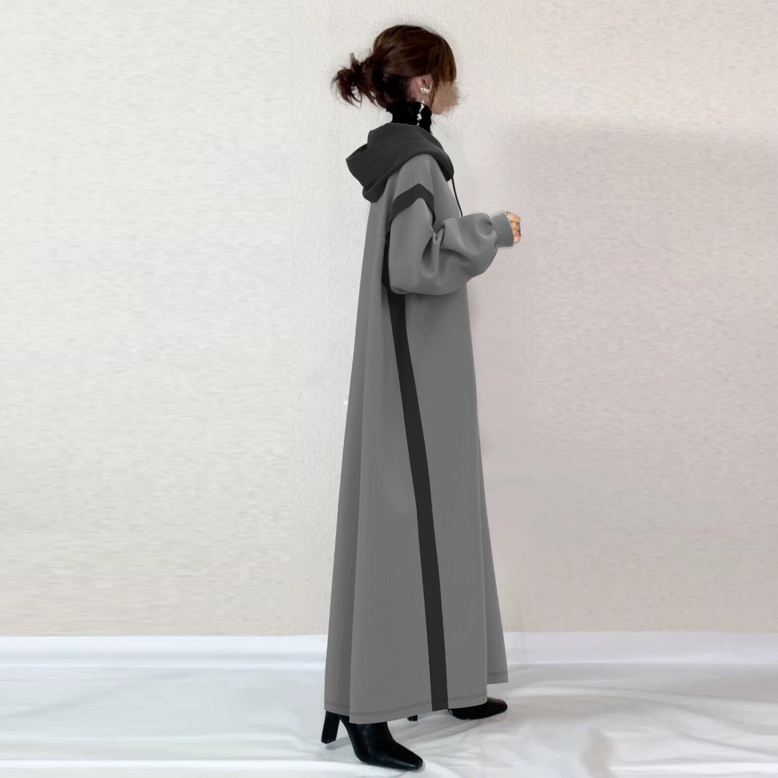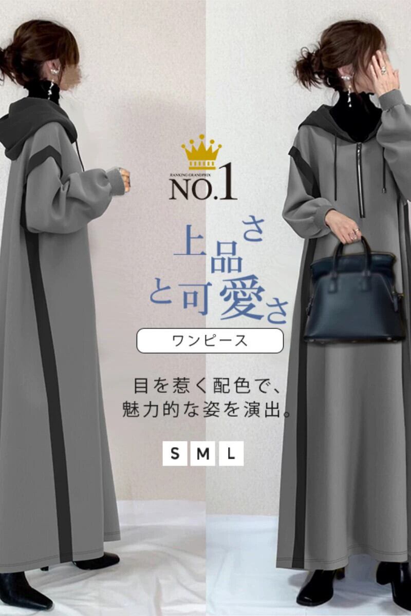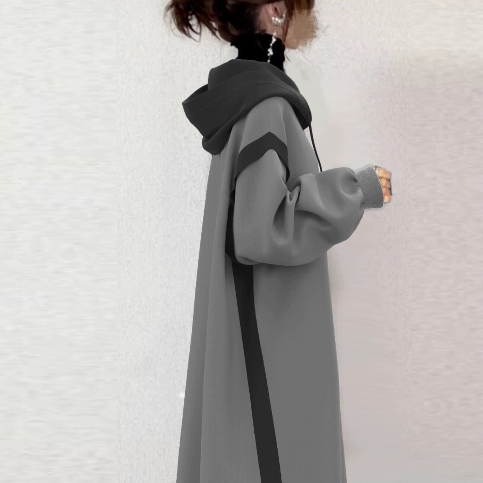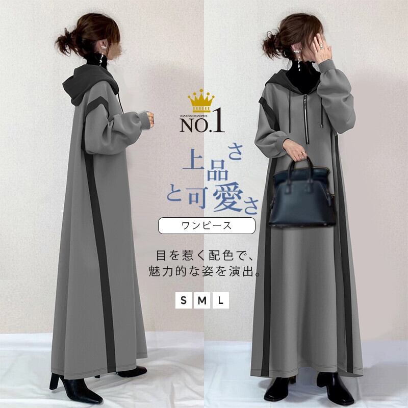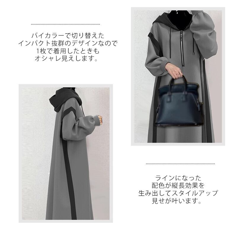 在庫あり 2023 春、秋、冬の新しいジッパー プルオーバー長袖コントラスト ステッチ フード付きスウェットシャツ スカート ロング スプリング 春物 オータム 秋物 ウィンター 冬物 cat842666962680