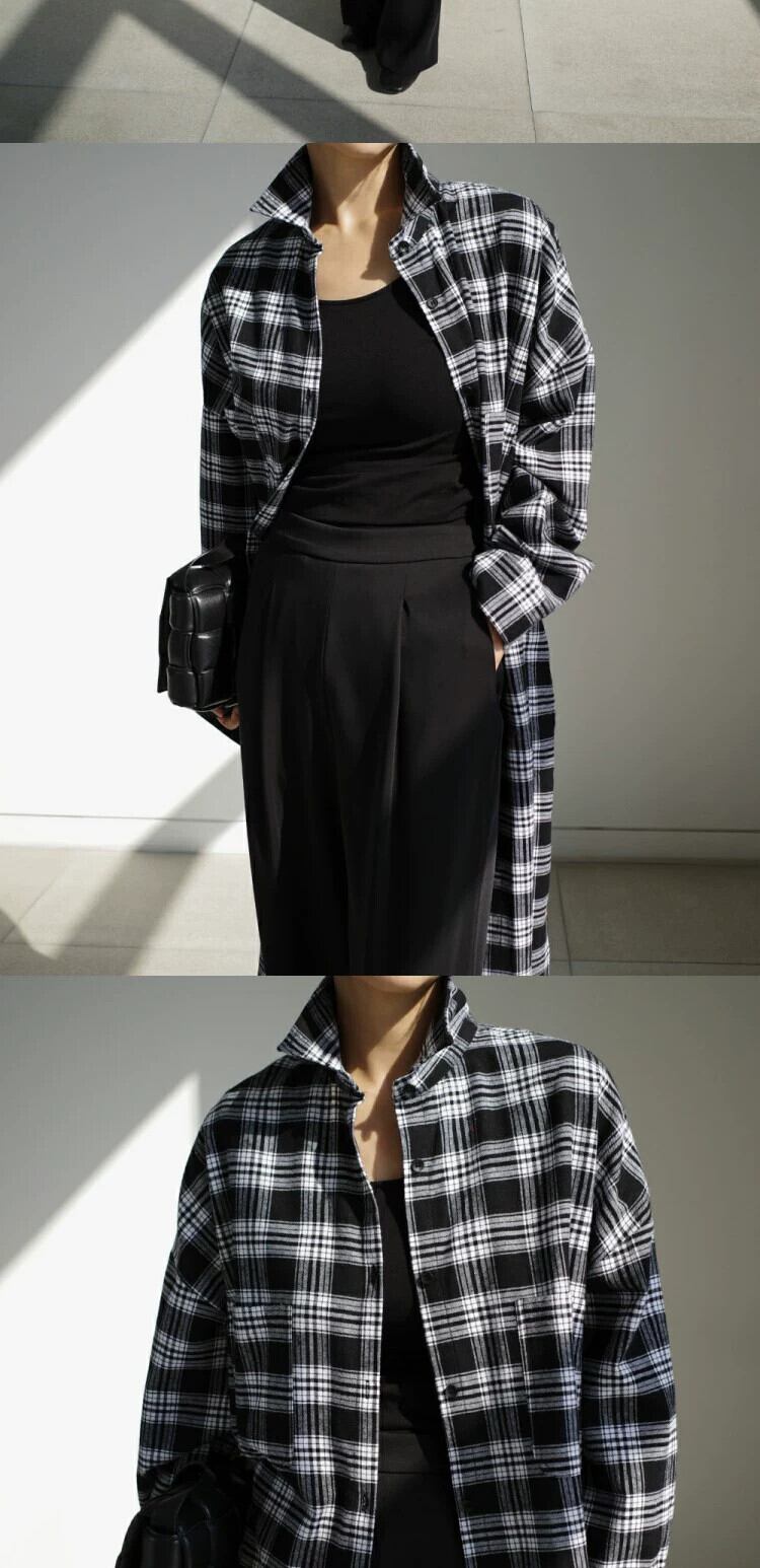 春秋スタイルシャツ、ミドル丈コート、スタイルゆったり大きいサイズサイドスリットチェック柄シャツレディースコートトレンド 大きめサイズ スプリング 春物 オータム 秋物 cat895518500062